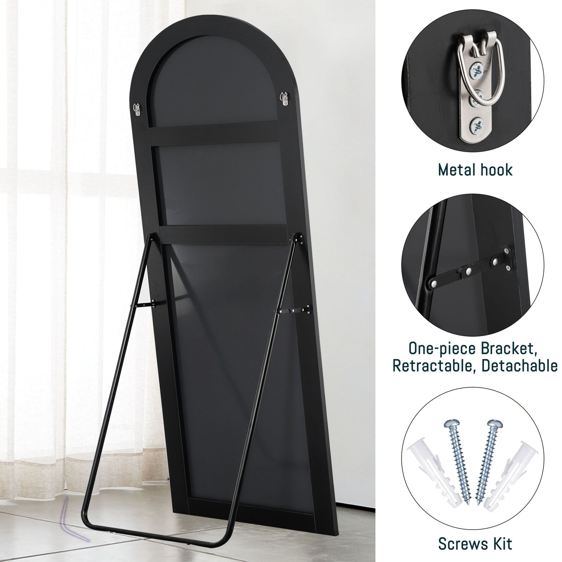Valorizza la tua casa con lo stile moderno e raffinato dello specchio ad arco a figura intera. Questo elegante specchio è perfetto per qualsiasi stanza e stile di arredamento, offrendo un'eccellente riflettività e chiarezza. La solida cornice in lega di alluminio e il vetro infrangibile garantiscono alta qualità e sicurezza.