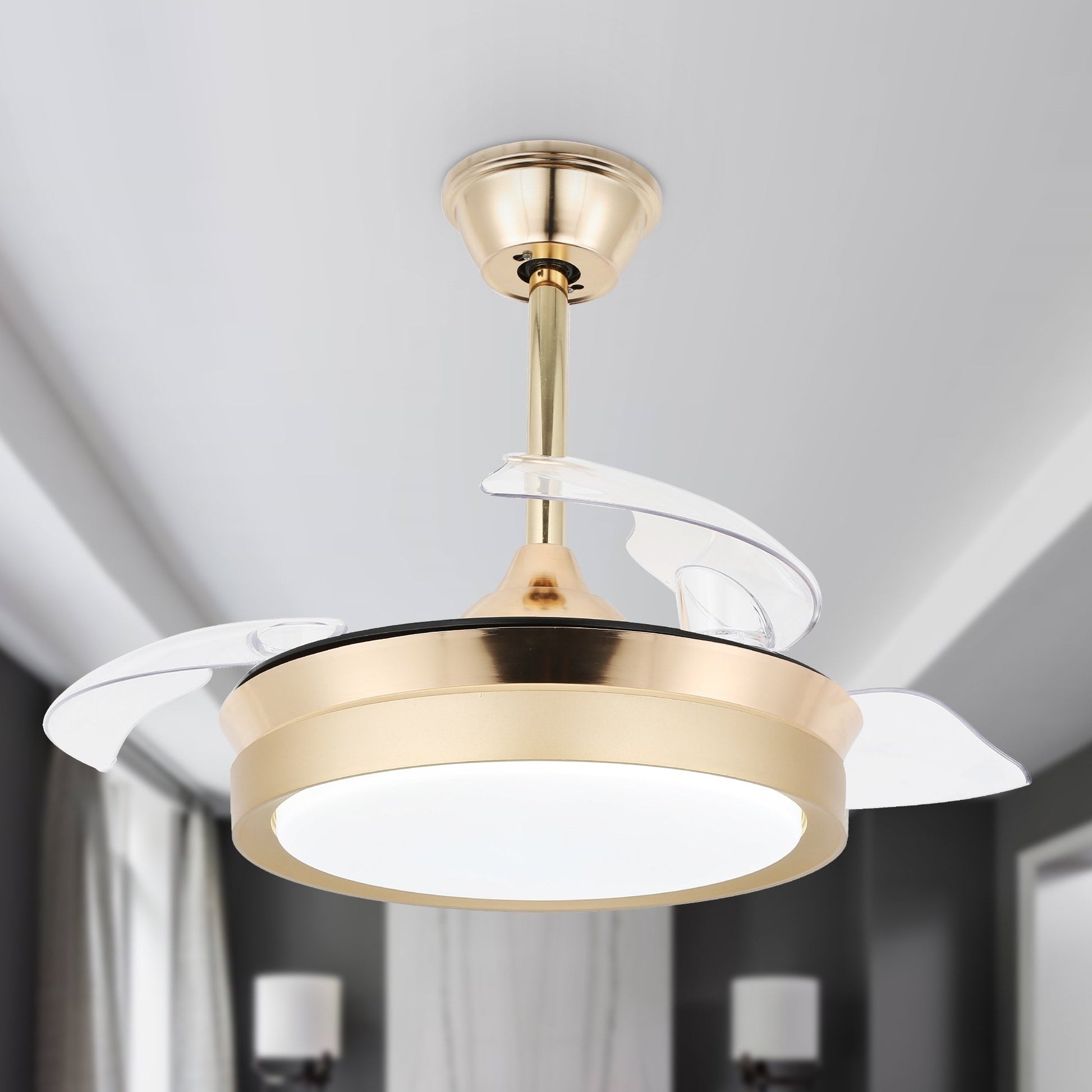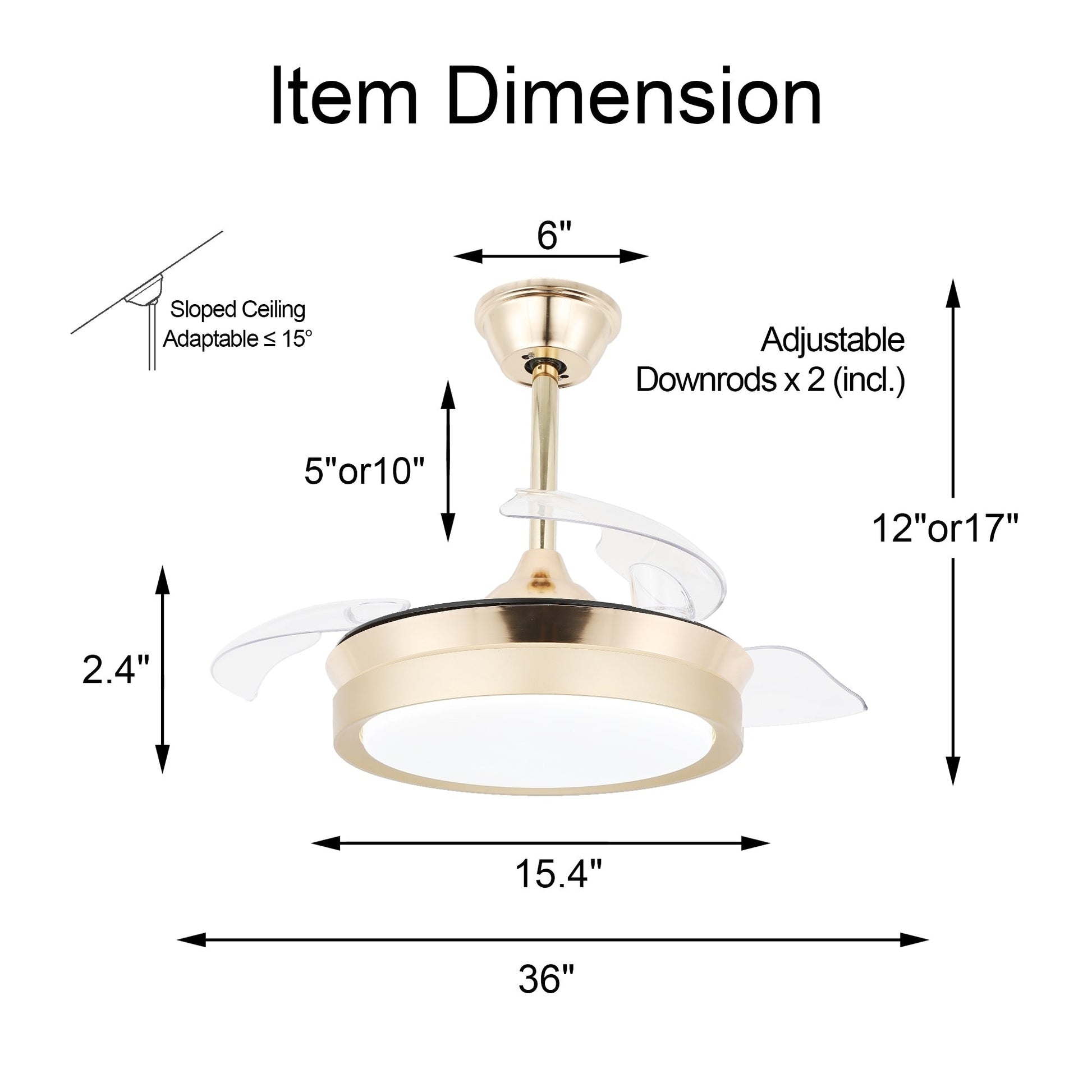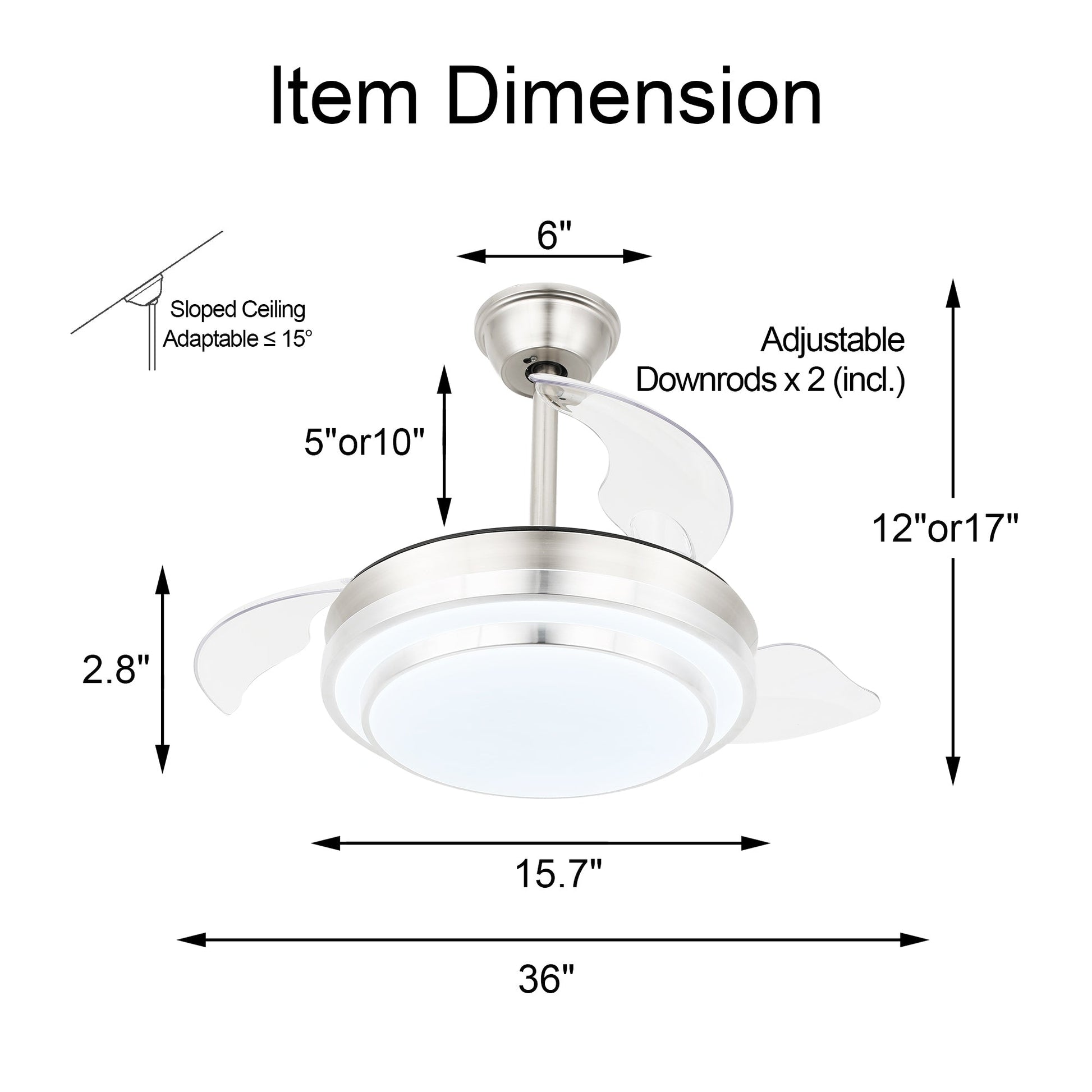 Ventilatore da soffitto retrattile moderno Bella Depot 36 con luce LED, pale reversibili a 6 velocità con telecomando