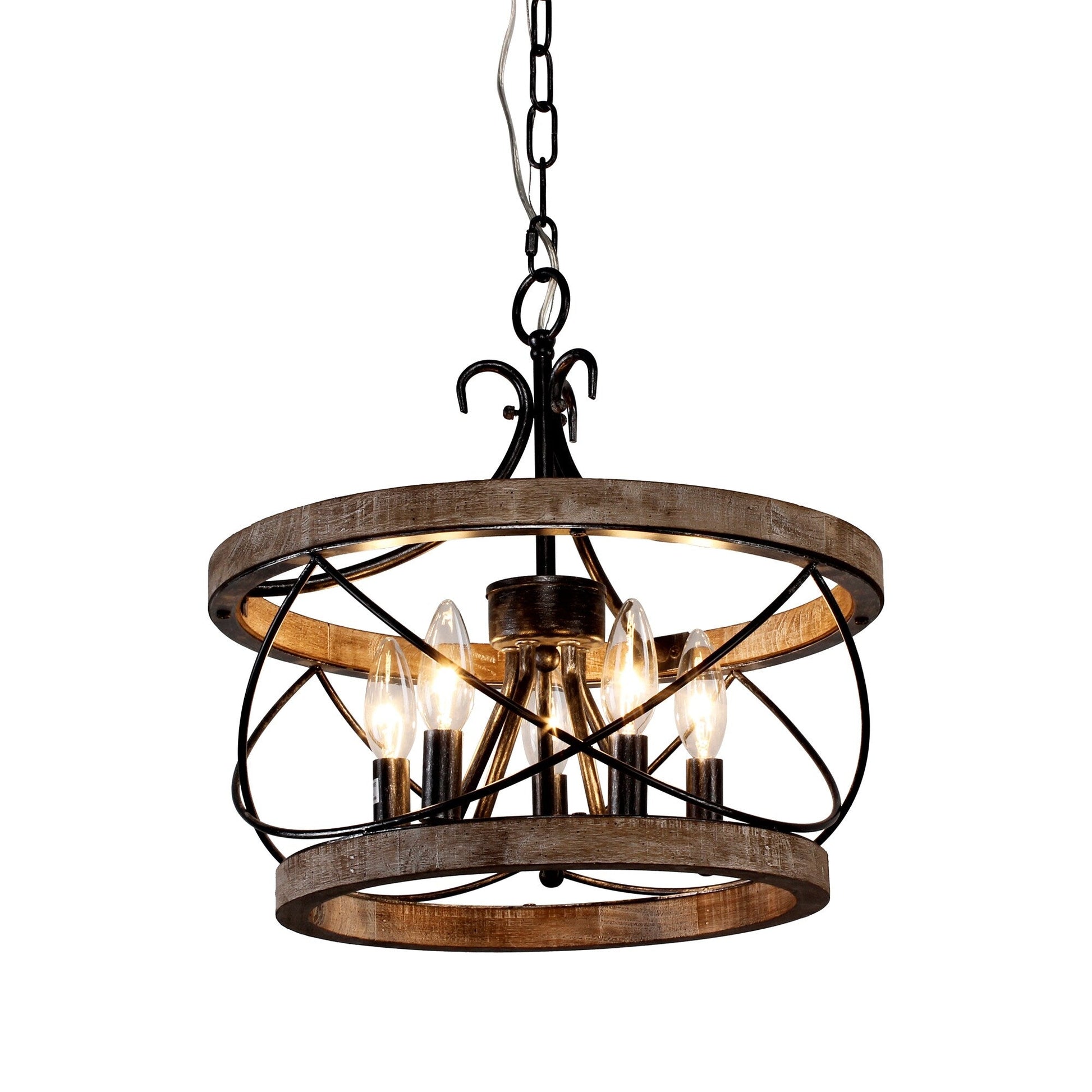 Bella Depot Lampadario rustico in legno a 5 luci con illuminazione dimmerabile, lampada a sospensione regolabile da 15,7 pollici per isola cucina
