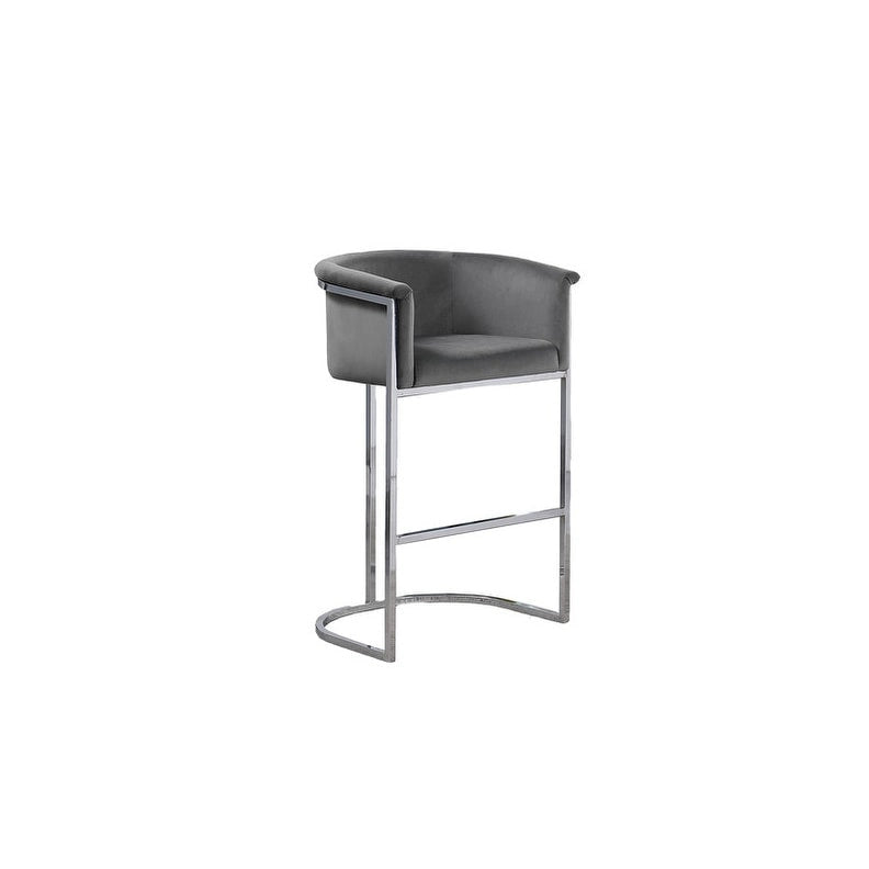 Aggiungi eleganza e comfort al tuo spazio con questa sedia imbottita da bancone. Il suo design semplice ma sofisticato la rende un'aggiunta perfetta a qualsiasi stanza. Rivestita in velluto e sostenuta da una resistente struttura in ferro dorato o argento, questa sedia è allo stesso tempo elegante e robusta. Disponibile in diversi colori, questa sedia monoblocco si abbina facilmente a qualsiasi stile di arredamento. Esalta l'aspetto della tua casa con questa versatile sedia da bancone.