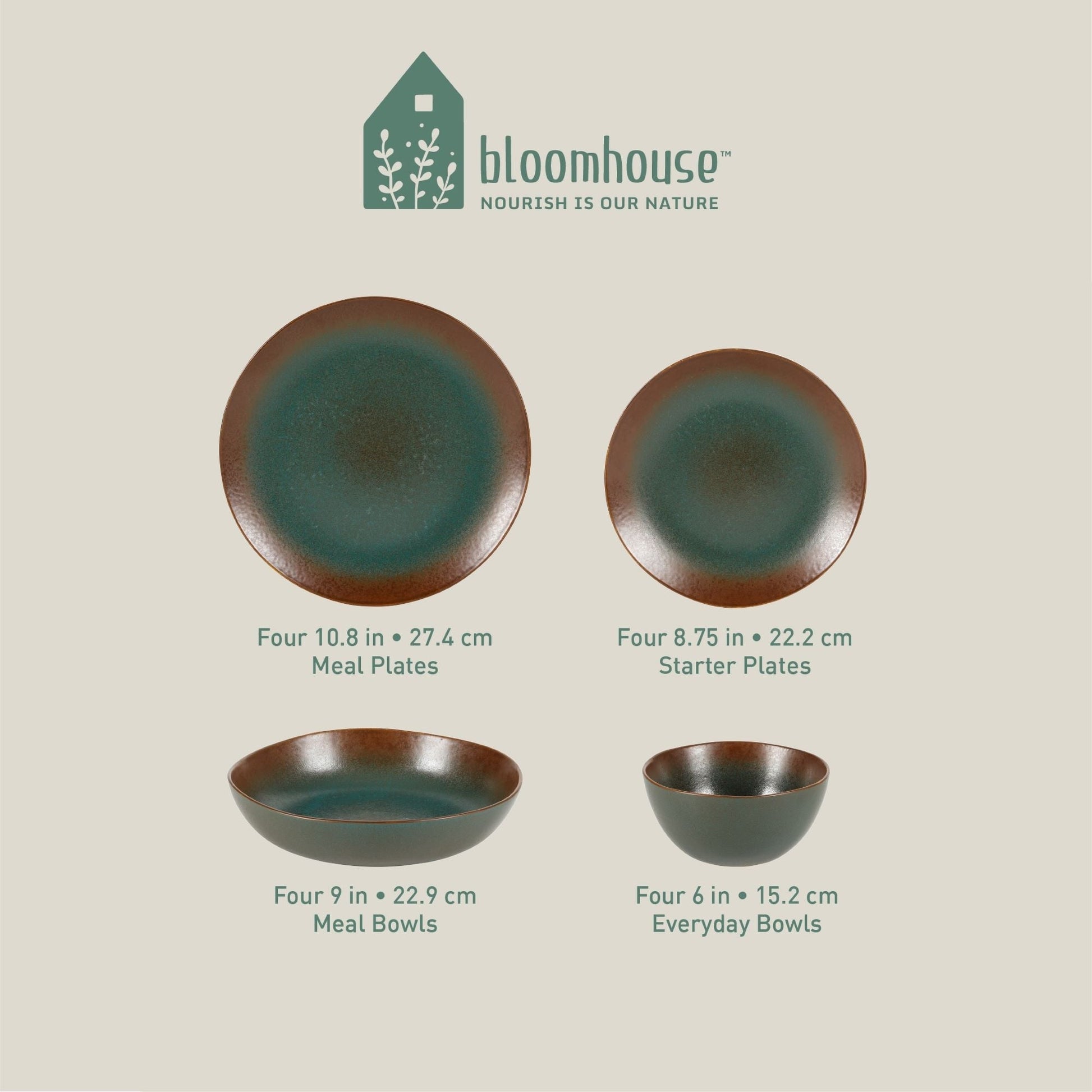 Lascia che il set di stoviglie reattive Palermo Sun da 16 pezzi di bloomhouse™ abbellisca la tua cucina o la tua tavola con sfumature organiche ed estetica artigianale ogni giorno. Realizzata con argille accuratamente selezionate e sostenibili, questa collezione di stoviglie in gres offre stile e corposità sostanziali per esaltare i pranzi e le feste a casa. Le forme rustiche conferiscono un aspetto artigianale, come se ogni piatto e ciotola provenissero dal tuo laboratorio di ceramica preferito. Cosparsi di macchie intenzionali dovute alla finitura smaltata reattiva, questi pezzi si abbinano bene ad altri coordinati per la tavola per creare le tue composizioni più fantasiose. Ricco di carattere e pieno di vita, questo set si adatta a qualsiasi apparecchiatura, dalle cene infrasettimanali alle pietanze più raffinate. Lavabile in lavastoviglie e adatto al microonde.