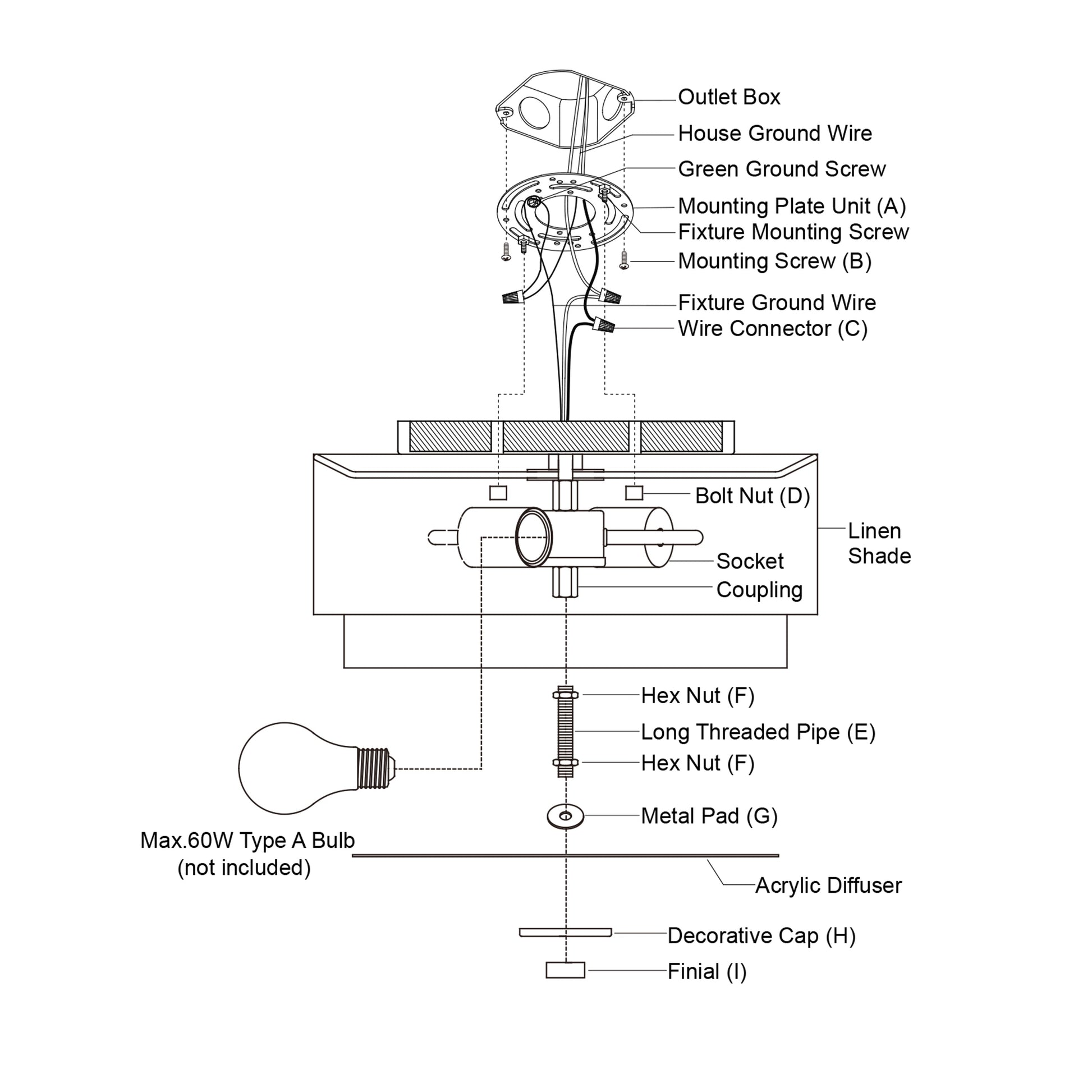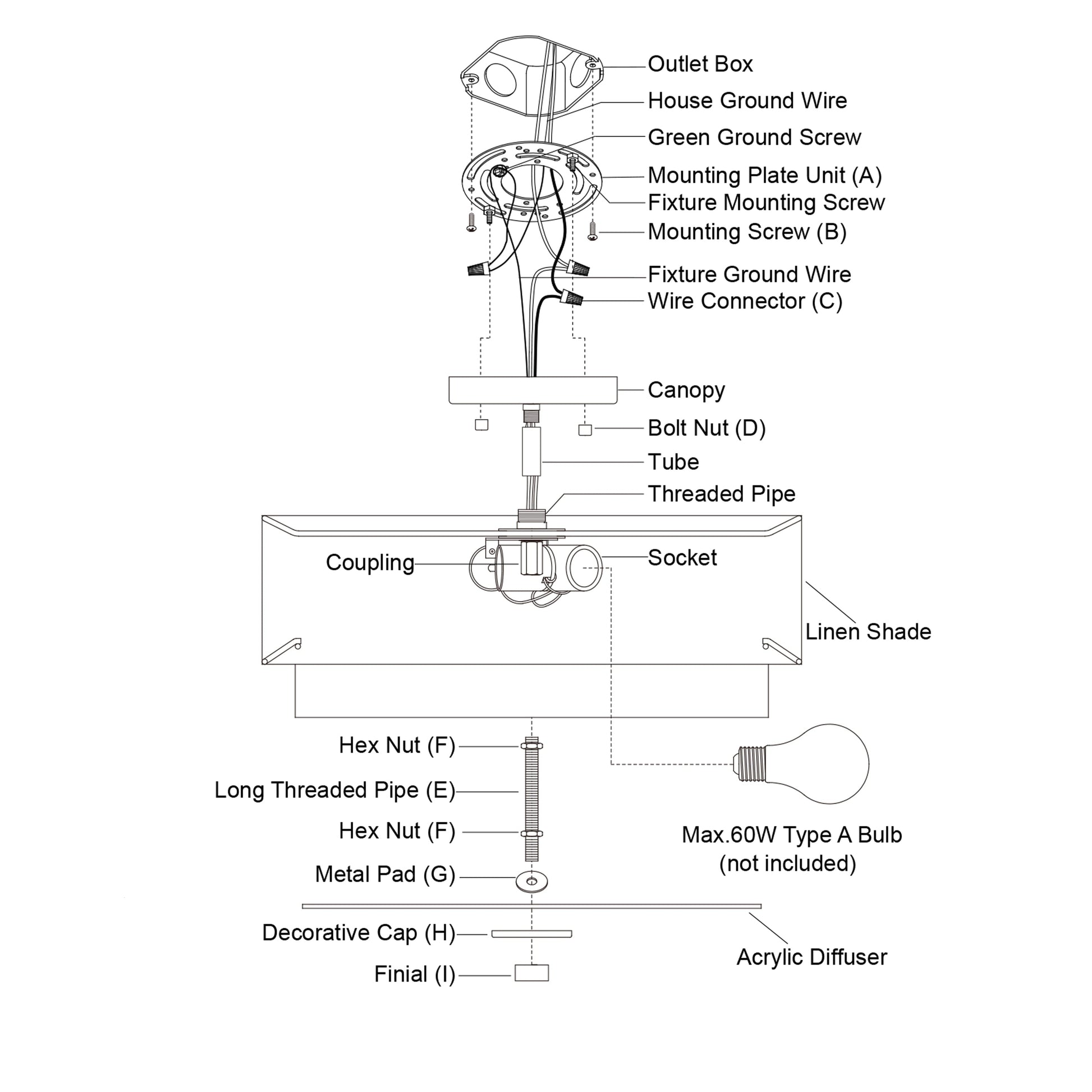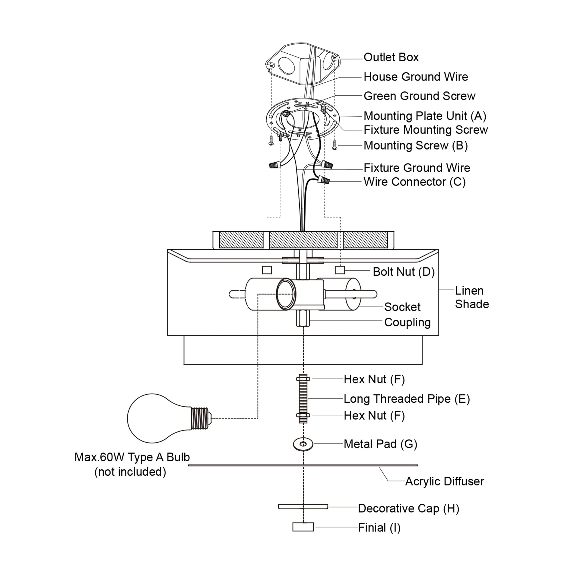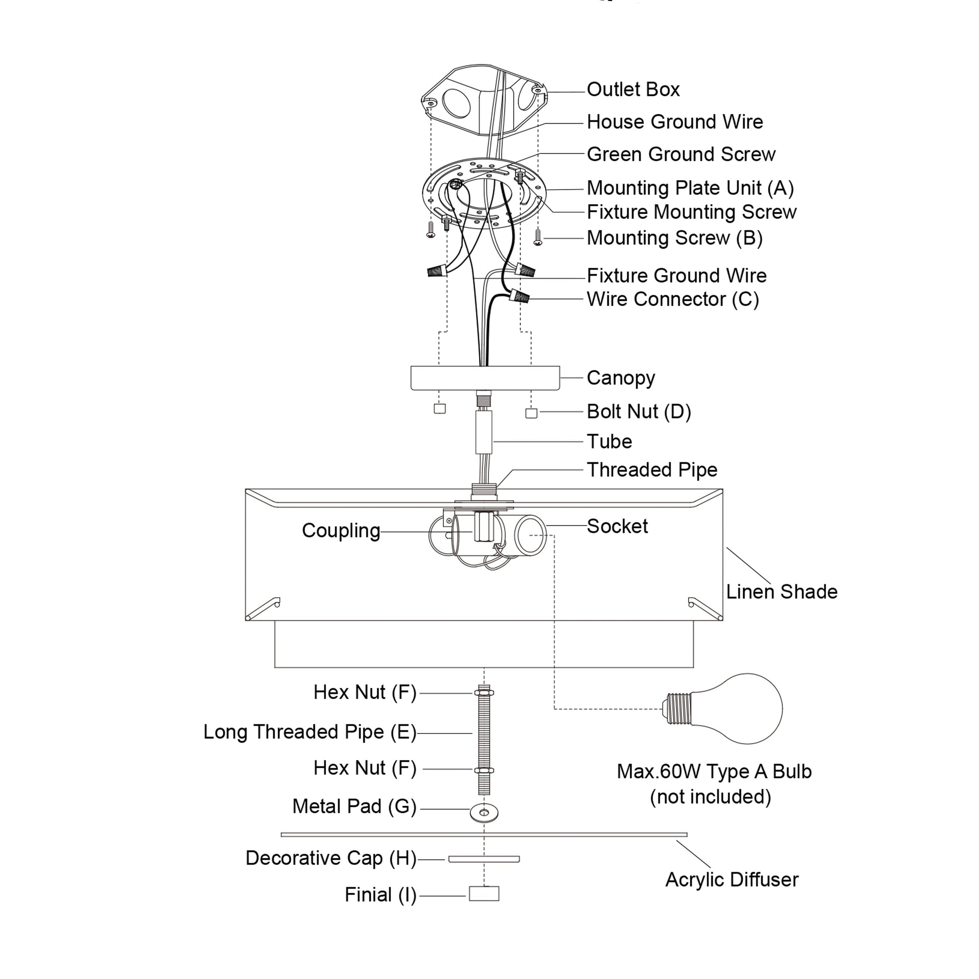 • Utilizza lampadine E26 da 60 watt con attacco medio (non incluse); compatibile con LED