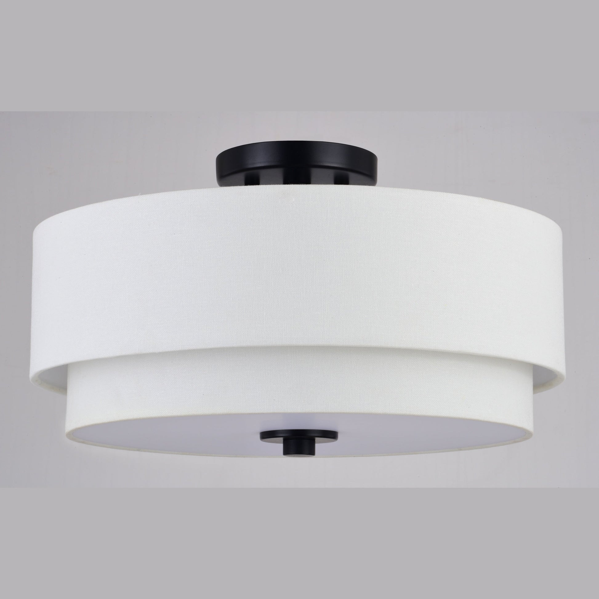 Lampada da soffitto Burnaby Mid-Century Modern con paralume a tamburo in lino bianco