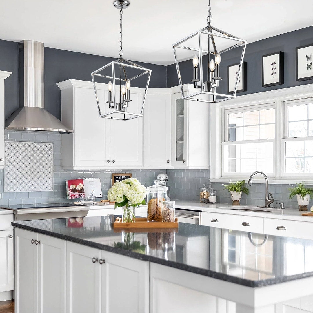 Illumina il tuo spazio abitativo con il fascino accattivante della nostra lanterna a sospensione in stile candela. Esalta l'atmosfera della tua casa aggiungendo un tocco di stile brillante al tuo soggiorno, alla sala da pranzo o all'ingresso con questa intramontabile lanterna a sospensione a 4 luci.