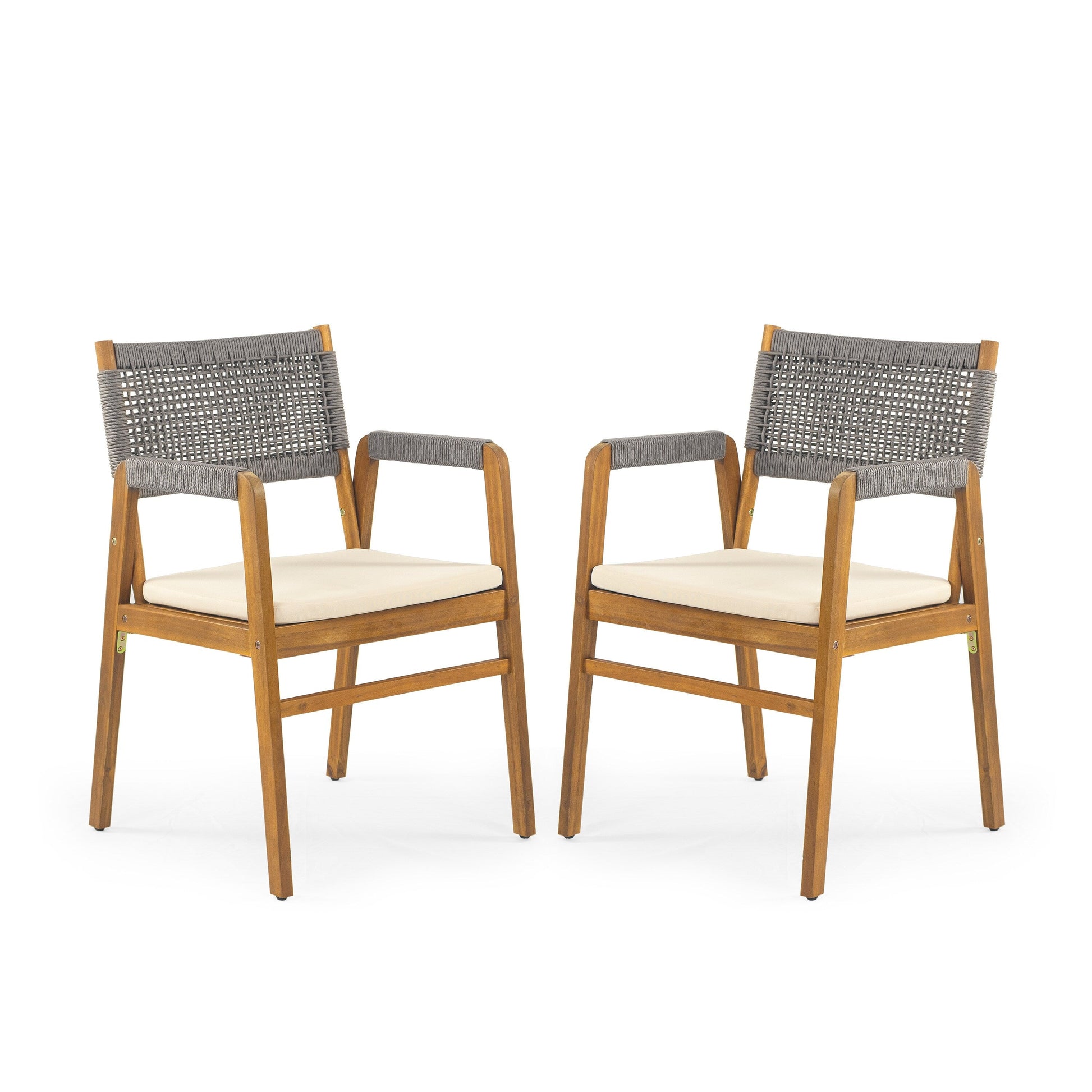 Arricchisci il tuo spazio esterno con questo elegante set di mobili in legno di acacia. Il set include due sedie con comodi schienali in corda intrecciata e un tavolo da bistrot coordinato in legno di acacia con un'elegante finitura in teak. Il design durevole e resistente alle intemperie è perfetto per un uso prolungato. Facile da montare con gli attrezzi inclusi. Dimensioni delle sedie: 55,5 cm L x 55,5 cm P x 83,2 cm A. Dimensioni del tavolo: 85,5 cm L x 85,5 cm P x 76,2 cm A.
