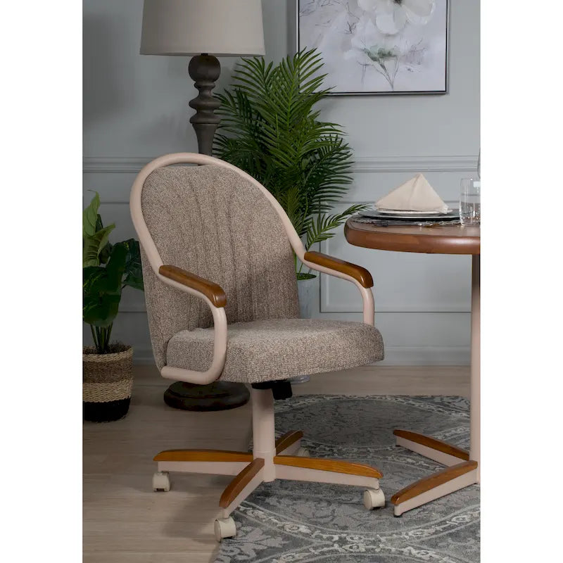 Prova il massimo comfort e praticità con la nostra sedia girevole e inclinabile con rotelle Casual Dining Cushion. Le ruote della sedia garantiscono una facile mobilità, mentre la sua funzione girevole ti permette di girarti e conversare con facilità. Lo schienale e la seduta imbottiti offrono un comfort duraturo, rendendola perfetta per chiunque abbia bisogno di una seduta comoda.