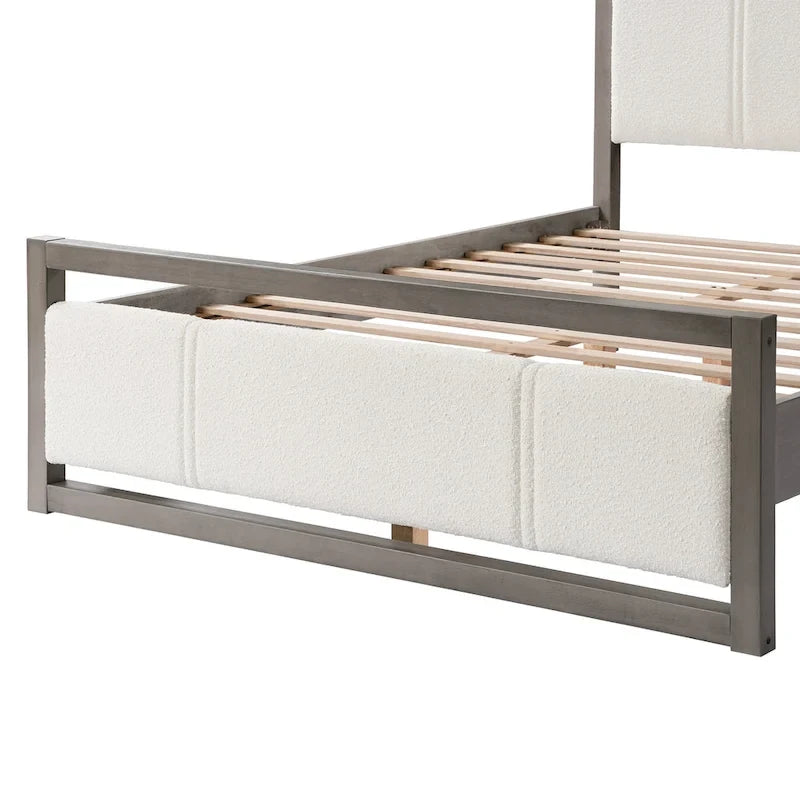 Letto matrimoniale con piattaforma Christopher Knight Home e testiera in tessuto bouclé avorio