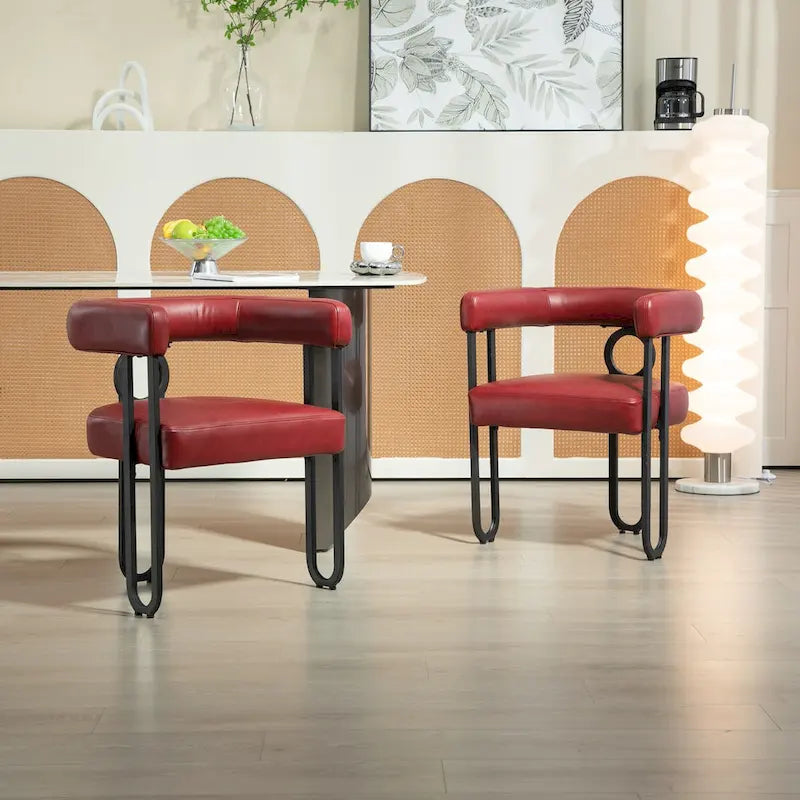 Sedia da pranzo, sedia a botte, poltrona da cucina, set di 2 sedie da soggiorno, con rivestimento in tessuto PU dal design contemporaneo