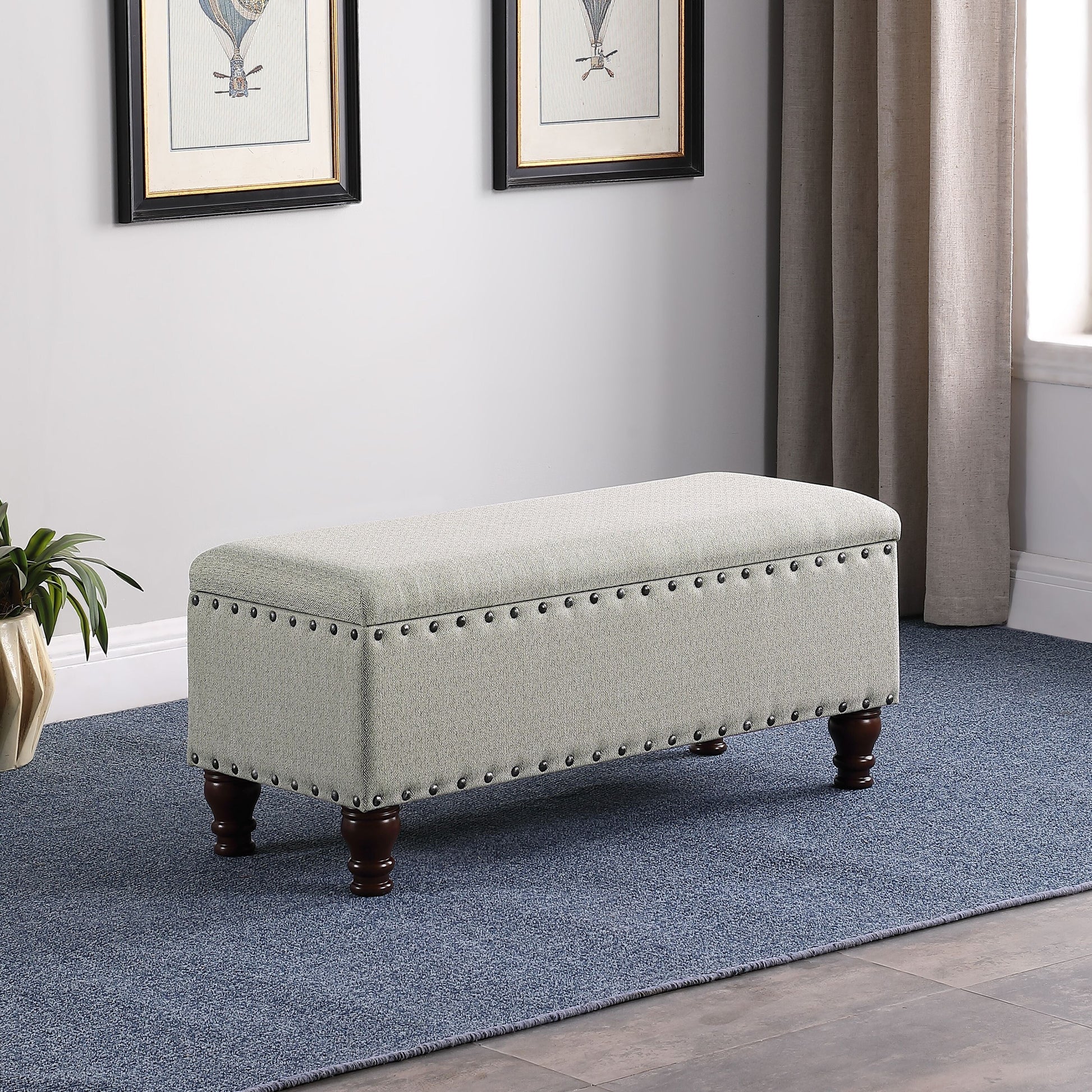 La panca contenitore imbottita Copper Grove Muscari con finiture a borchie è l'aggiunta perfetta all'arredamento della tua casa. Questa classica panca rettangolare lunga è caratterizzata da un tessuto testurizzato e finiture a borchie in bronzo che trasudano eleganza. Con gambe in legno in una gamma di finiture pregiate, questa panca si adatta a molti stili di interior design. La panca multifunzionale può offrire una comoda seduta, fungere anche da tavolino, da panca per la camera da letto o da panca per l'ingresso con ampio spazio di archiviazione. Il coperchio incernierato è rinforzato per la sicurezza e rivela un'ampia capacità di archiviazione. Disponibile in una gamma di colori a tinta unita testurizzati, questa panca è facile da montare e manutenere.