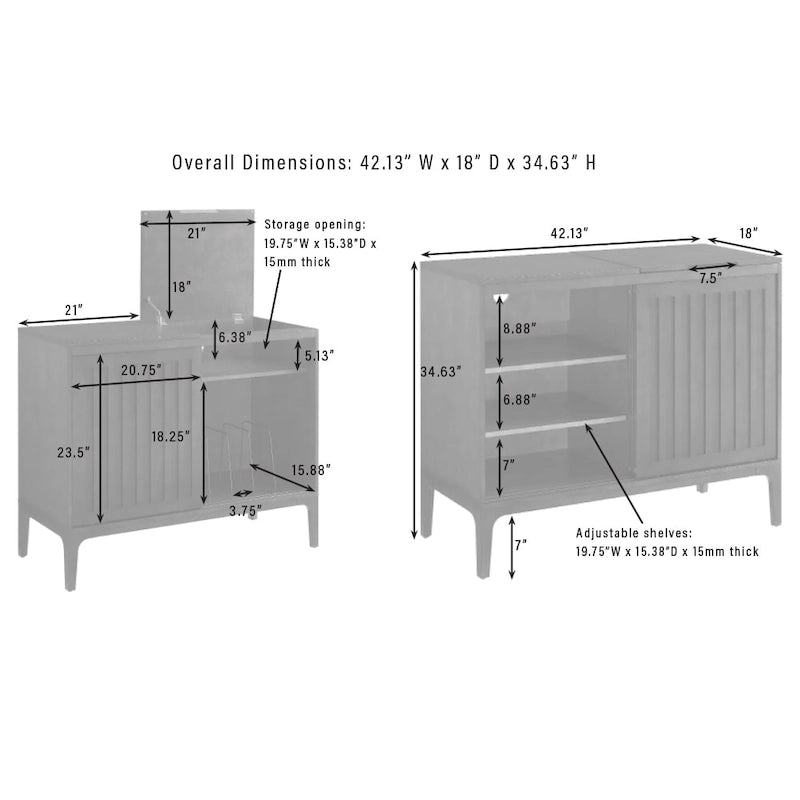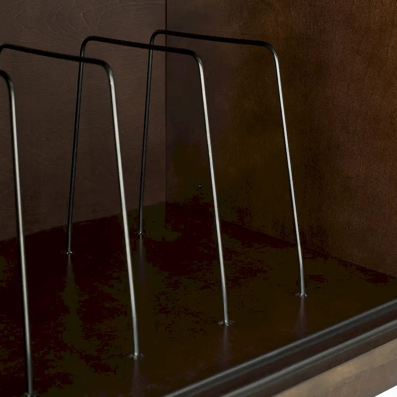 Entra nel ritmo con la console multimediale Asher Record Storage. Questa moderna console multimediale presenta un profilo elegante e ante scorrevoli con effetto listellato. Che tu abbia bisogno di un supporto per giradischi con spazio di archiviazione o di un elegante mobiletto decorativo, questo mobiletto per giradischi è la soluzione ideale. Con ante scorrevoli che si aprono su ripiani regolabili da un lato e un vano portavinili dall'altro, questo mobiletto multimediale è un'aggiunta perfetta alla tua casa.