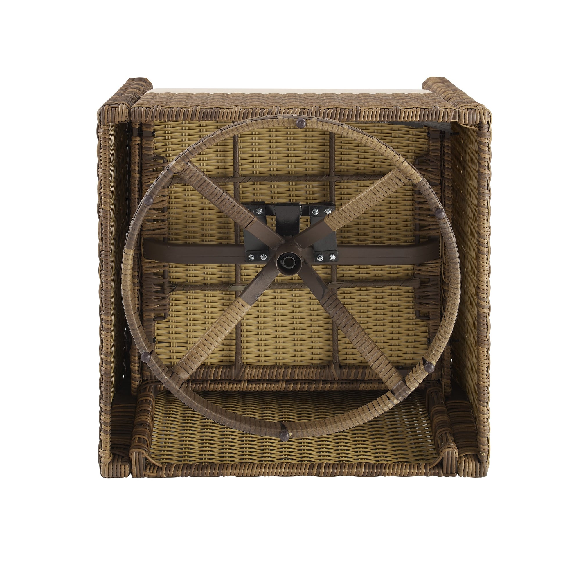 Godetevi un'esperienza di seduta all'aperto rilassante ed elegante con il set di 5 sedie a dondolo e divano girevoli Bradenton. Questo set presenta una resistente struttura in acciaio rivestita in splendido vimini resistente alle intemperie e include comode sedie a dondolo girevoli, un divano, un tavolino da caffè con piano in vetro e un tavolino laterale. Le sedie hanno una base girevole e a dondolo di alta qualità per un movimento fluido e facile, e gli spessi cuscini resistenti all'umidità offrono il massimo comfort. Che si tratti di una serata sotto le stelle o di un pomeriggio a bordo piscina, il set di 5 sedie Bradenton è l'aggiunta perfetta al vostro portico o patio.