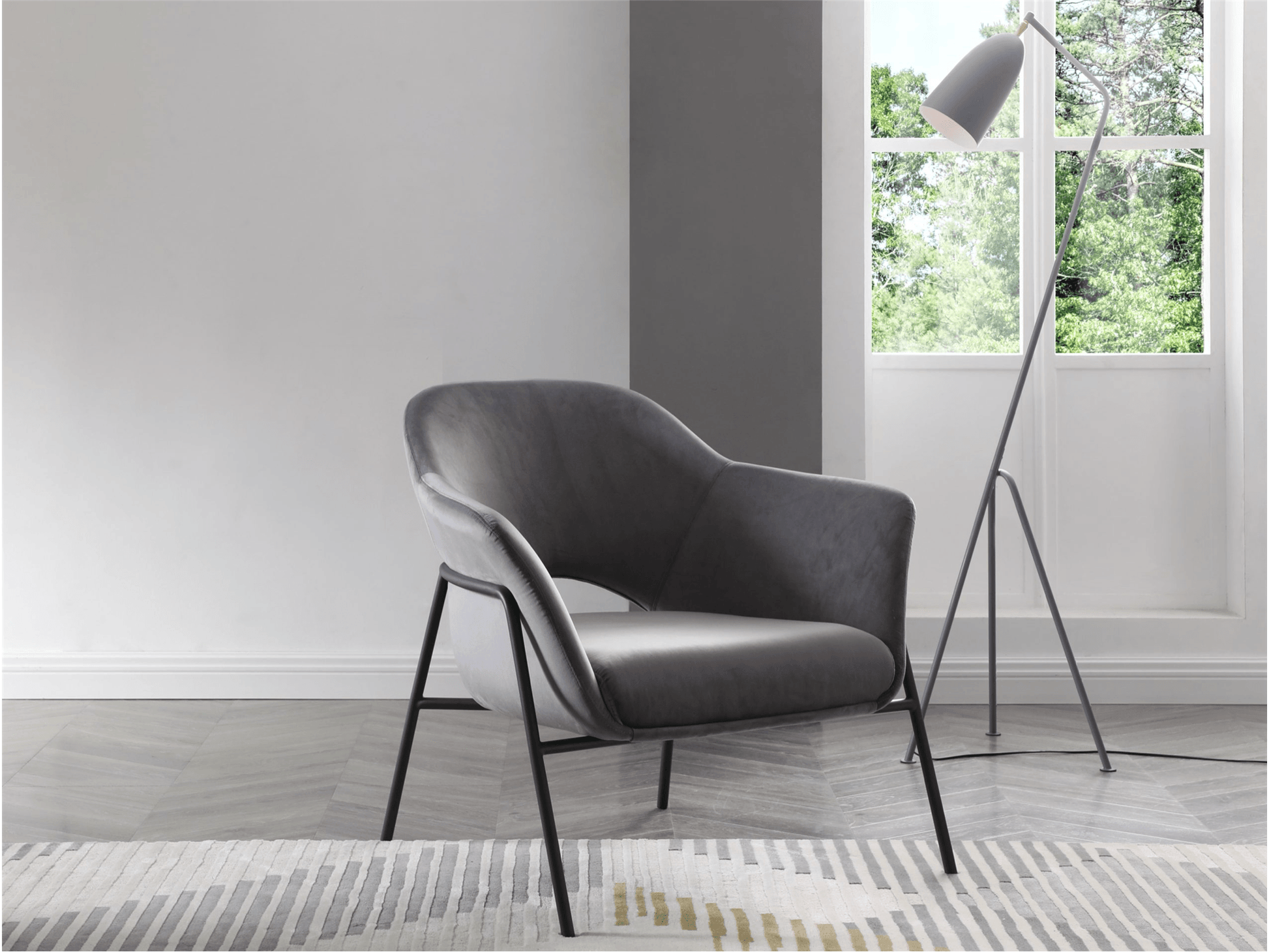 Poltrona Darla Accent, tessuto in velluto blu o grigio.