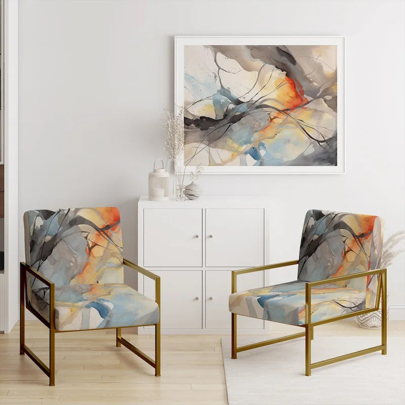 Poltrona imbottita e poltrona moderna con braccioli Designart Marble Serenity, onde colorate grigie ad acquerello, forme astratte