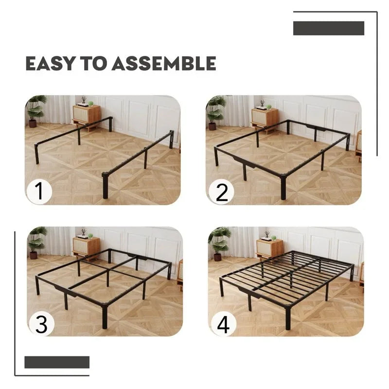 Questa struttura del letto è realizzata in metallo nero semplice e liscio che si integra perfettamente con diversi stili. Con un ampio spazio di 12,4 pollici sotto il letto, non solo può ospitare facilmente una grande quantità di oggetti, ma consente anche di pulire facilmente scope e spazzatrici. La robusta struttura in metallo consente alla struttura del letto di sopportare facilmente un peso di 450 kg, quindi non c'è bisogno di preoccuparsi che la struttura del letto si sfaldi. La struttura del letto è dotata di cinghie antiscivolo al centro e su entrambi i lati, in modo che il materasso sulla struttura del letto non scivoli e possa rimanere nella sua posizione originale. Installazione della struttura del letto senza un installatore professionista: è facile da installare, basta seguire i passaggi nelle istruzioni, che ti verranno consegnate a casa insieme alla struttura del letto.
