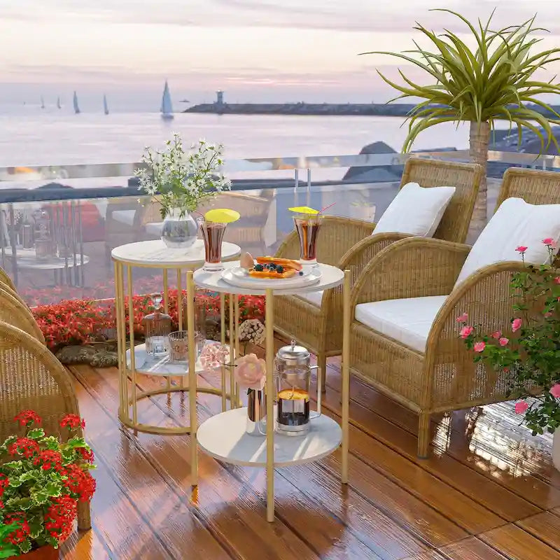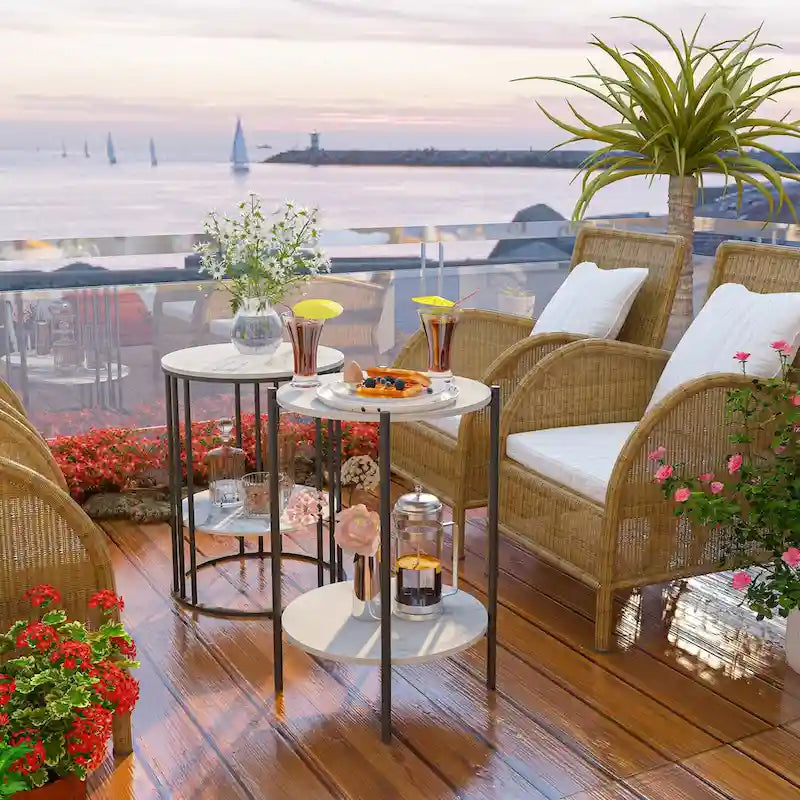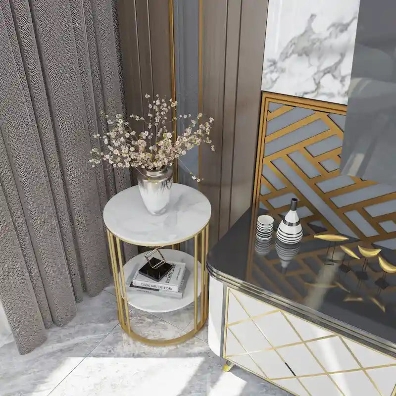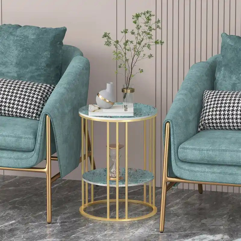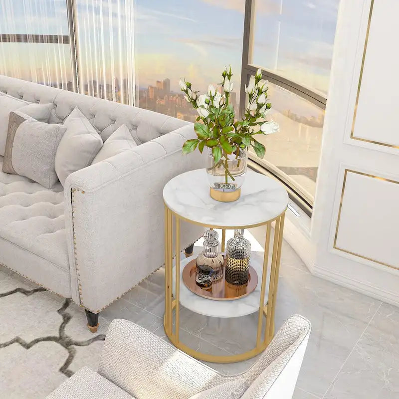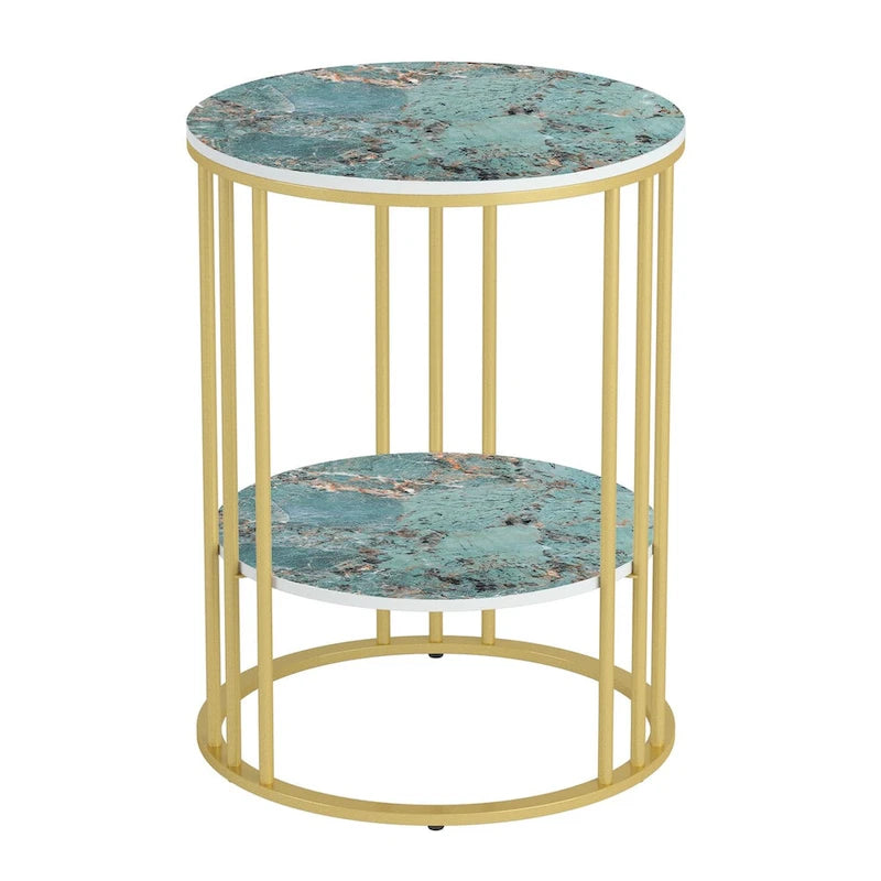 Tavolino laterale rotondo a 2 livelli con piano in pietra sinterizzata - 15,7x15,7x21,3 pollici