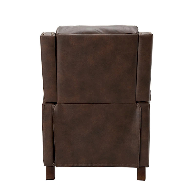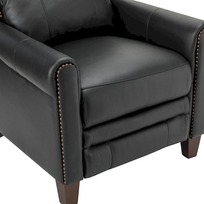 Prova il massimo comfort con la poltrona reclinabile manuale in vera pelle Felisa. Rivestita in pelle di prima qualità, questa poltrona reclinabile offre una sensazione di morbidezza e comfort. La sua robusta struttura in legno può supportare fino a 113 kg, mentre le finiture con borchie e il morbido cuscino della seduta offrono il massimo relax per corpo e mente. Gli elementi retrò e il design moderno di questa poltrona reclinabile la rendono un complemento d'arredo versatile, perfetto per qualsiasi ambiente della casa. Che tu voglia sederti, semi-sdraiarti o reclinarti completamente, questa poltrona reclinabile fa al caso tuo.