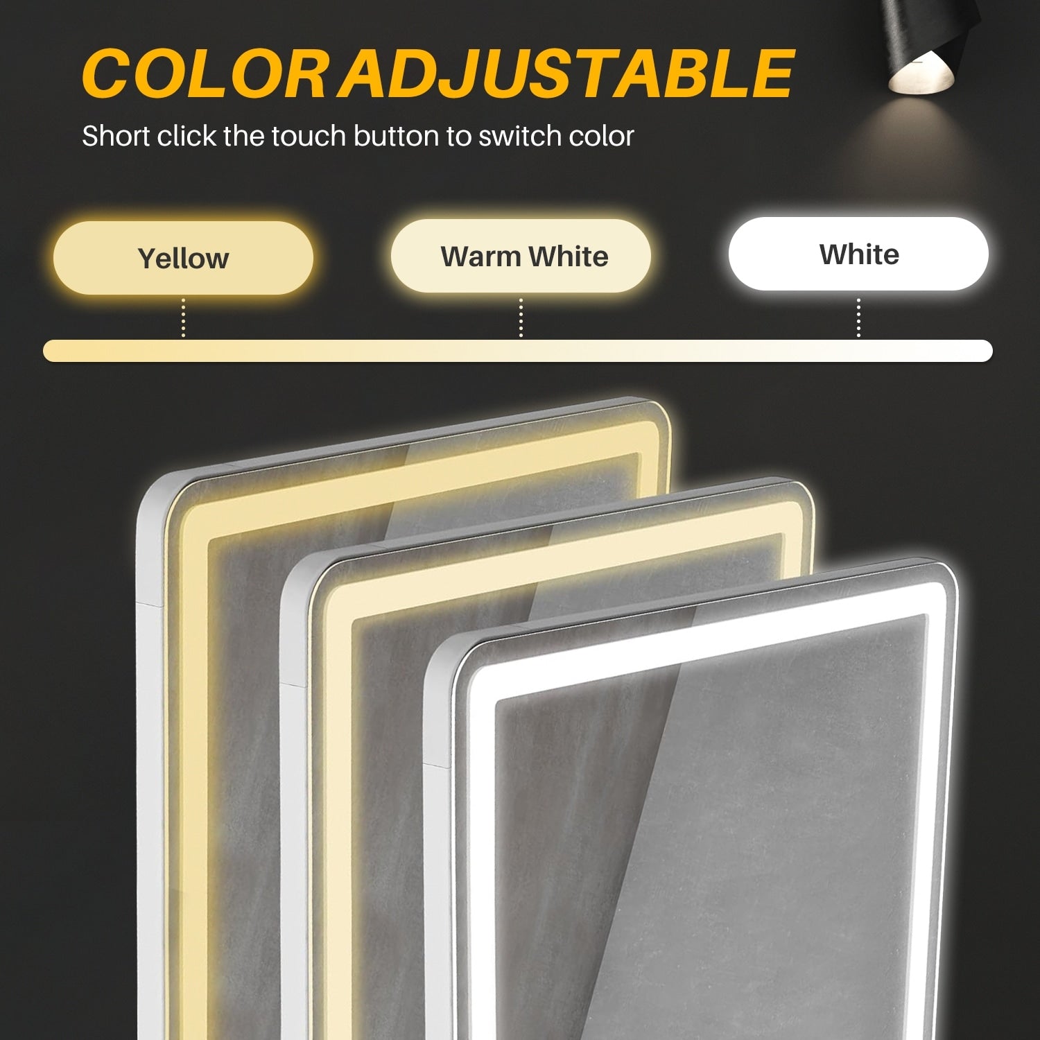 - 【Specchio illuminato】: questo specchio a figura intera è dotato di una striscia di 200 perline LED che possono essere regolate in base alla luminosità e al colore desiderati. Premere brevemente l'interruttore touch per cambiare la temperatura del colore in luce bianca, luce calda e luce gialla. Premere a lungo l'interruttore per secondi per regolare la luminosità desiderata.