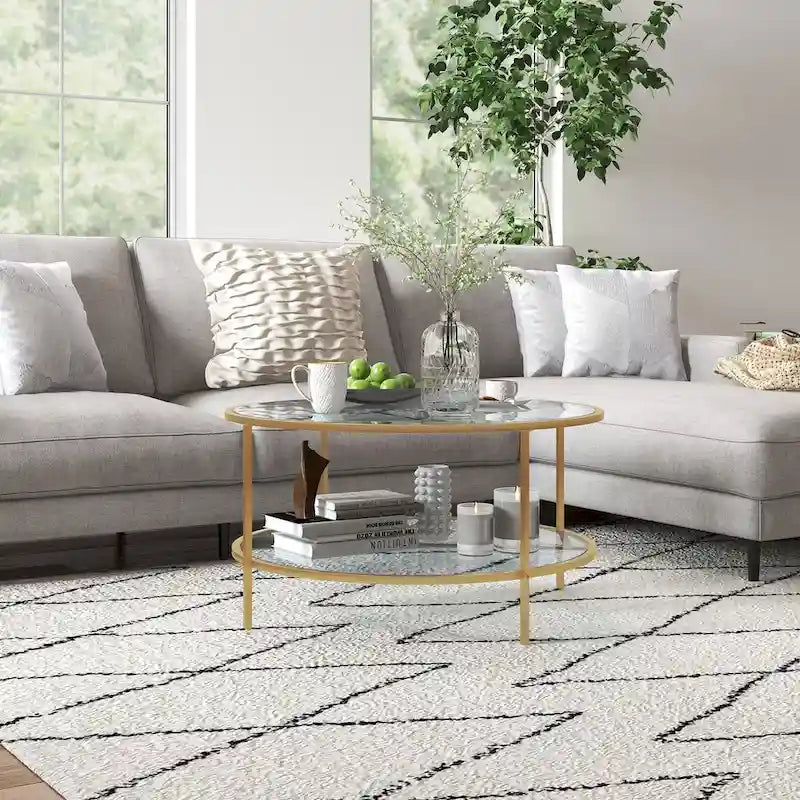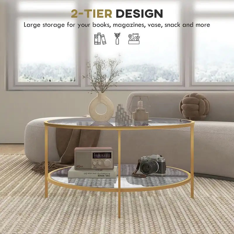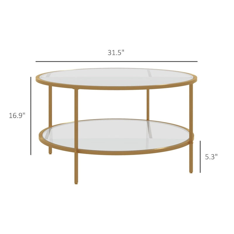 Tavolino laterale HOMCOM con contenitore, tavolino rotondo da 32 pollici, tavolino da caffè in vetro temperato a 2 livelli con struttura in acciaio