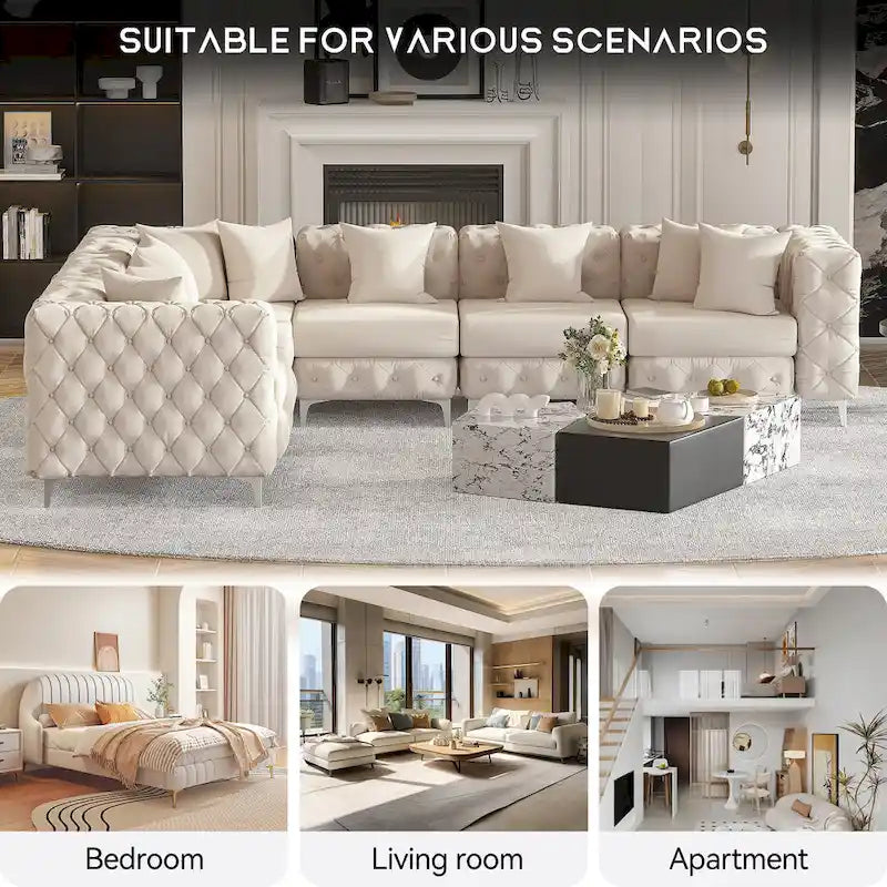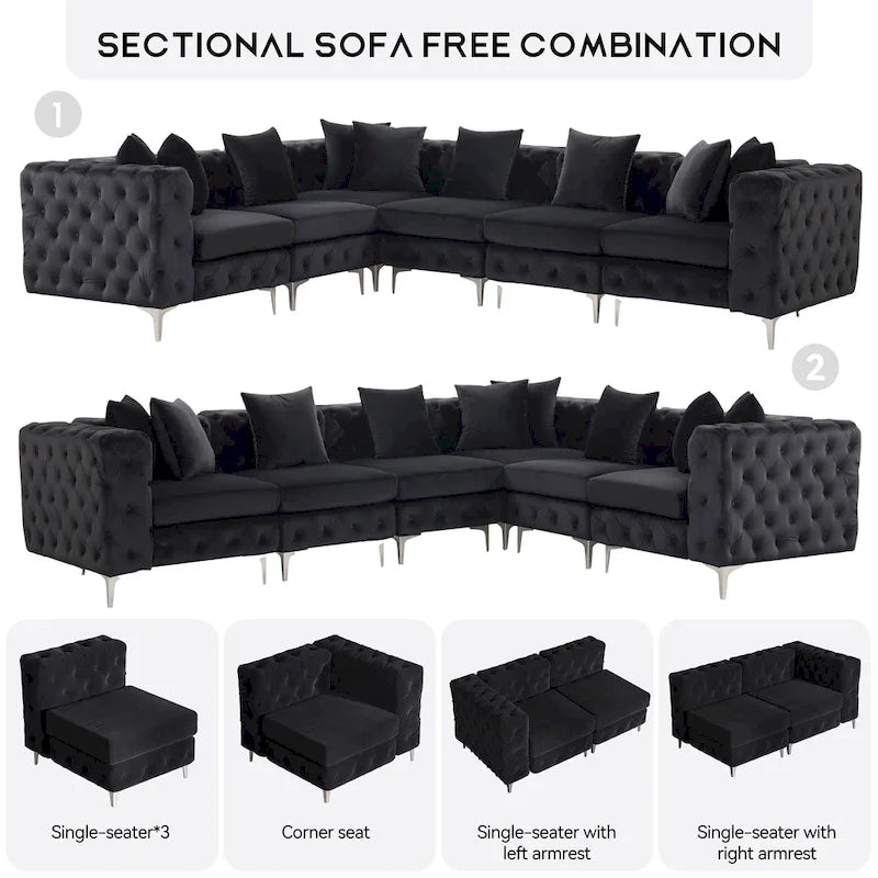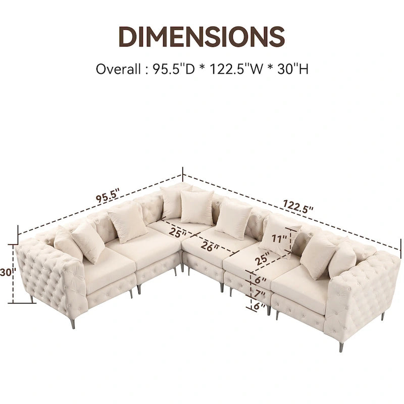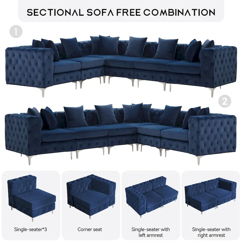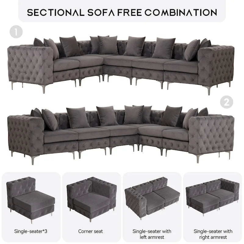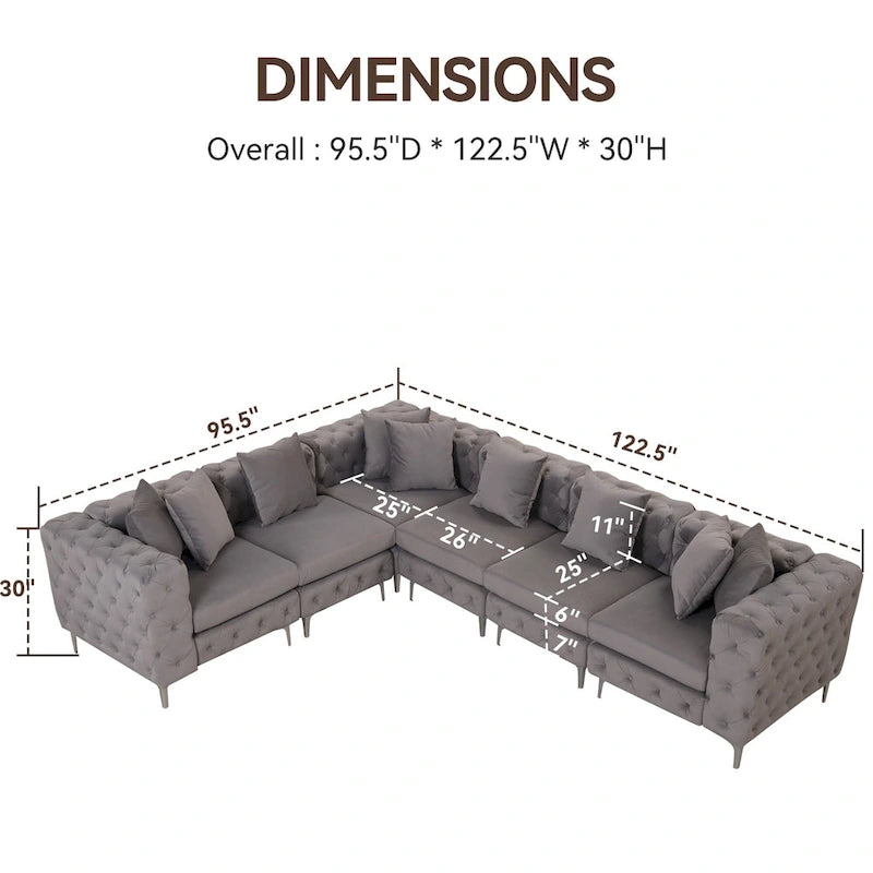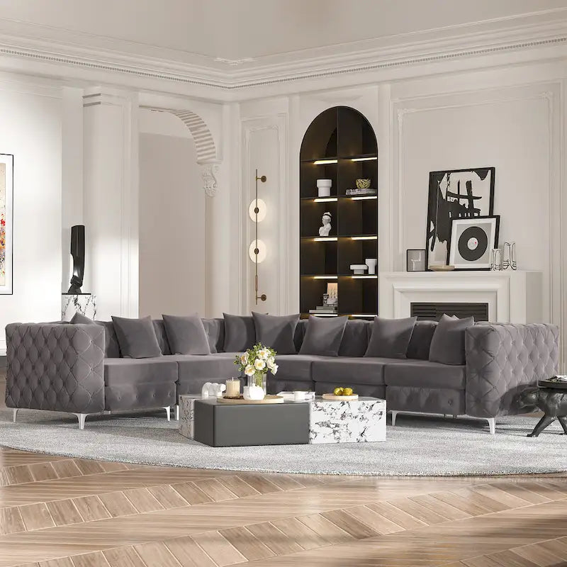 Divano componibile a L di grandi dimensioni, divano componibile in velluto a 6 posti