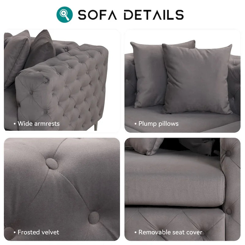 - Design del cuscino trapuntato: l'elegante design del cuscino trapuntato non solo esalta l'aspetto estetico del divano, ma offre anche un comfort eccezionale, garantendo a te e ai tuoi ospiti un'esperienza di relax lussuosa.