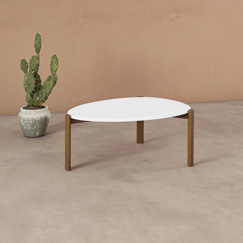 Vi presentiamo il nostro straordinario tavolino da caffè e complemento d'arredo Modern Gales Oval Triangle, un'aggiunta versatile al vostro soggiorno e alla vostra sala da pranzo. Realizzato con un tocco artistico, presenta un esclusivo piano ovale triangolare e un design delle gambe esterne che aggiunge un tocco di design straordinario all'arredamento della vostra casa. Realizzato con una struttura in MDF di alta qualità e gambe in legno massello di eucalipto, questo tavolo unisce stile e resistenza. Abbinatelo ai nostri tavolini Manhattan Comfort per creare un look armonioso ed elegante, che farà risaltare il vostro soggiorno e la vostra sala da pranzo.
