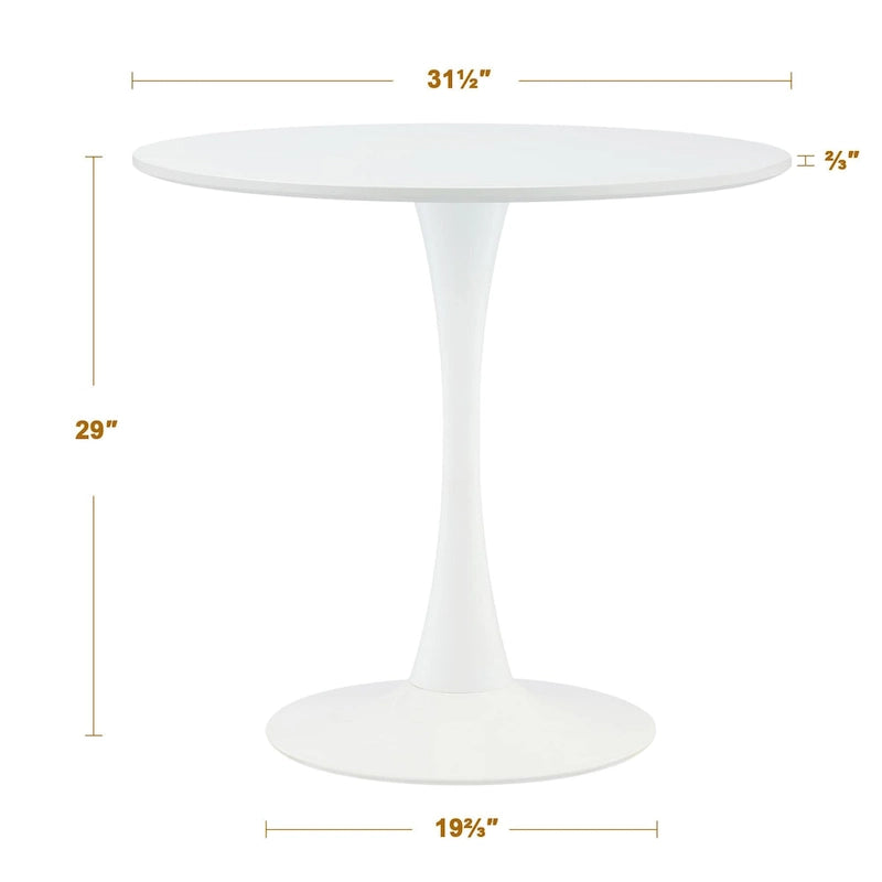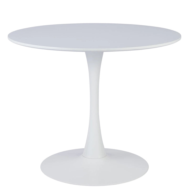 Crea un ambiente intimo massimizzando lo spazio con questo tavolo da pranzo rotondo. Con un diametro di 90 cm, il nostro tavolo da cucina in stile Mid-Century si adatta facilmente a qualsiasi spazio. Adatto a ospitare comodamente fino a 6 persone, questo piccolo tavolo con piedistallo è perfetto come tavolo da pranzo, angolo pranzo, tavolino da caffè e tavolo da gioco. Questo versatile tavolo rotondo Tulip è costruito per durare, supportando facilmente fino a 100 kg grazie al piano in MDF, alla robusta gamba in acciaio laminato a freddo e alla base con piedistallo larga 60 cm. Facile da montare, questo tavolo da bistrot moderno, funzionale ma elegante, si monta rapidamente per aggiungere un tocco minimalista e affascinante alla tua casa.