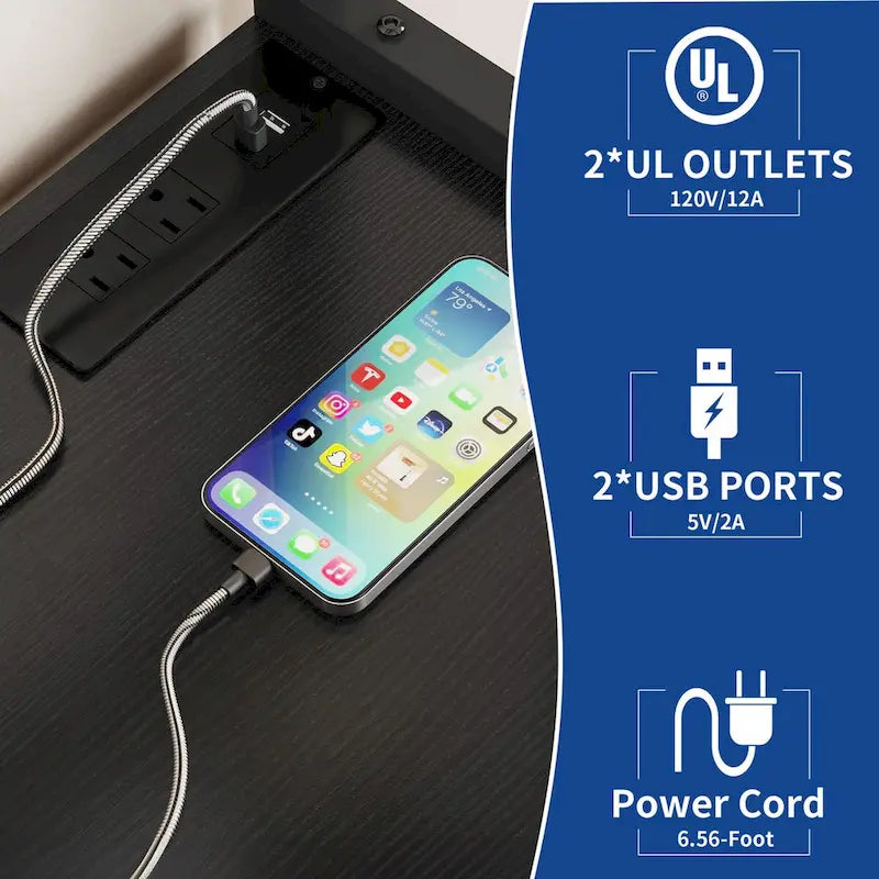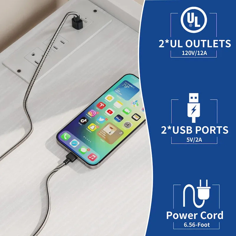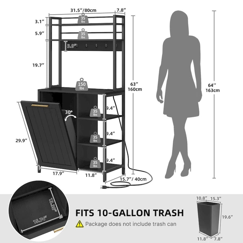 Migliora la funzionalità della tua cucina con il nostro versatile scaffale da panettiere. Dotato di 2 prese CA e 2 porte USB, elimina l'ingombro dei cavi e alimenta i tuoi elettrodomestici. Lo scaffale è dotato di un cestino ribaltabile (non incluso) per un piano di lavoro ordinato ed è realizzato in robusto legno ingegnerizzato P2 idrorepellente. Sei ganci in metallo offrono ulteriore spazio per utensili o asciugamani. Grazie al suo design verticale, questo scaffale da panettiere rappresenta una soluzione salvaspazio in cucina, ufficio o bagno.