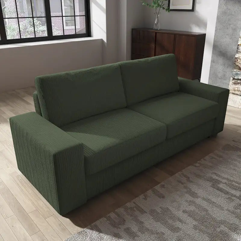 - Questo divano è realizzato con una struttura robusta e materiali durevoli per garantire che durino nel tempo, offrendo comfort e stile per anni a venire. I piedini del divano sono dotati di cuscinetti antiscivolo per proteggere il pavimento dai graffi.