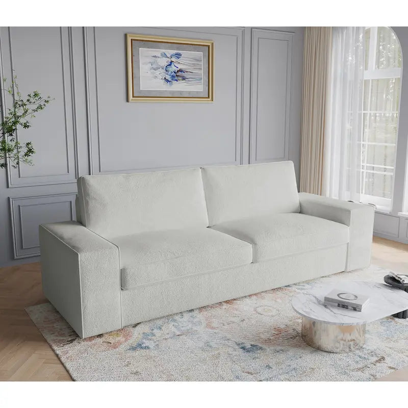 Questo divano è rivestito in tessuto di lino, offrendo una seduta morbida e confortevole. Il design moderno e minimalista aggiunge un tocco di eleganza a qualsiasi spazio abitativo. Grazie alle sedute spaziose, questo divano può ospitare comodamente fino a tre persone, rendendolo perfetto per intrattenere gli ospiti o trascorrere momenti in famiglia. Il suo design adattabile gli permette di essere posizionato in diversi ambienti, rendendolo un elemento d'arredo flessibile che si adatta alle tue mutevoli esigenze. Che tu stia arredando un soggiorno, una camera da letto, un appartamento o un ufficio, questo divano a due posti sarà sicuramente un'aggiunta funzionale ed elegante al tuo spazio.