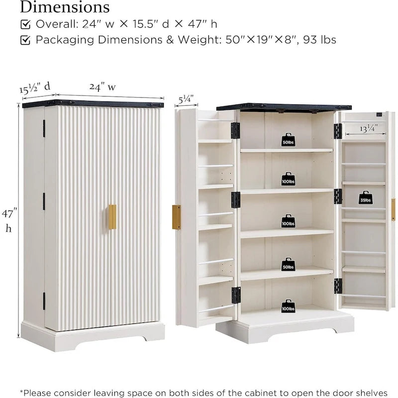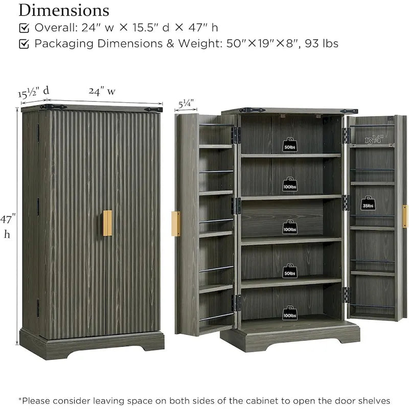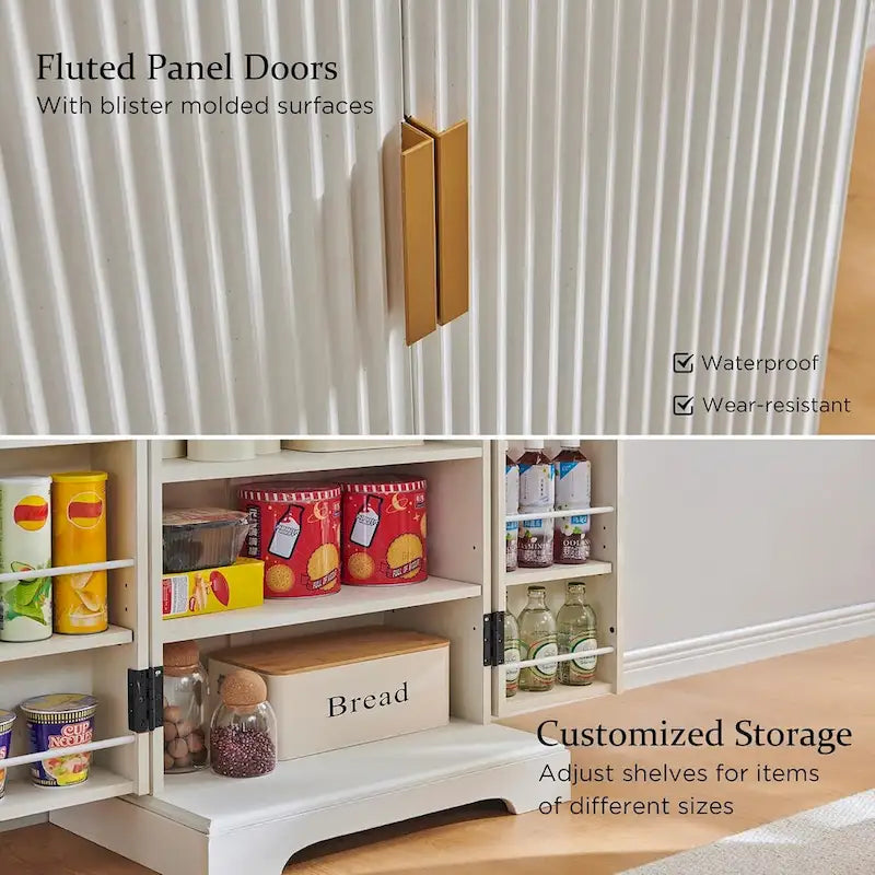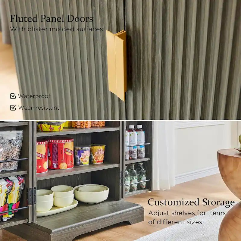 Il nostro moderno mobiletto da 47 pollici è la scelta ideale per la cucina, la sala da pranzo, il soggiorno e il bagno. Il mobiletto è dotato di due ante con un delicato design a forma di onda, che aggiunge un senso di profondità tridimensionale e non solo è bello da vedere, ma aggiunge anche un tocco di modernità allo spazio. Realizzato in legno ingegnerizzato e metallo di alta qualità, il mobiletto è resistente e di facile manutenzione, con proprietà impermeabili e antigraffio che garantiscono una lunga durata. Il design interno è spazioso, con 5 ripiani regolabili e 10 ripiani regolabili per le ante, che possono essere regolati in modo flessibile in base alle proprie esigenze. Il design con chiusura magnetica sull'anta consente di chiudere facilmente l'anta del mobiletto e mantenerla pulita. Che lo si utilizzi per riporre stoviglie, utensili da cucina o altri articoli per la casa, questo mobiletto può soddisfare le esigenze ed è la soluzione perfetta per lo stoccaggio domestico.