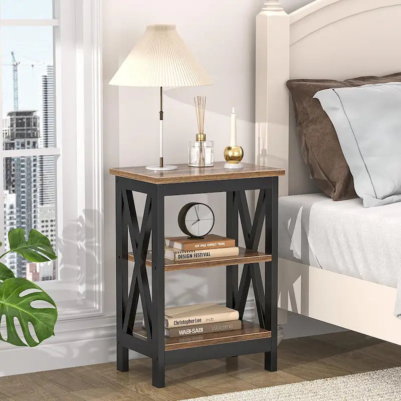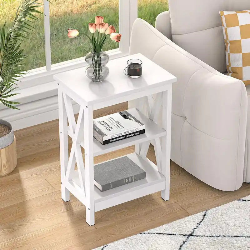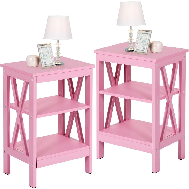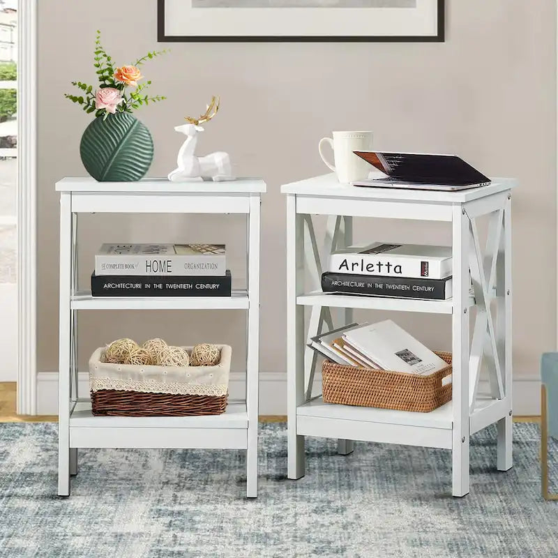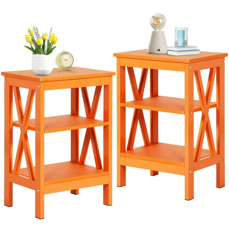 Tavolini moderni con ripiani portaoggetti a 3 livelli, set comodini a X (set da 2)