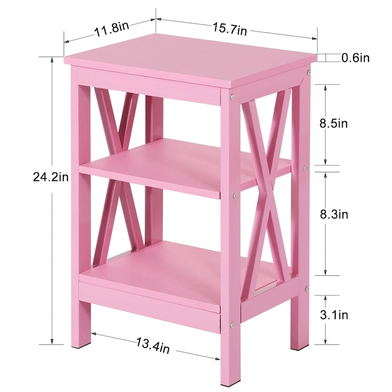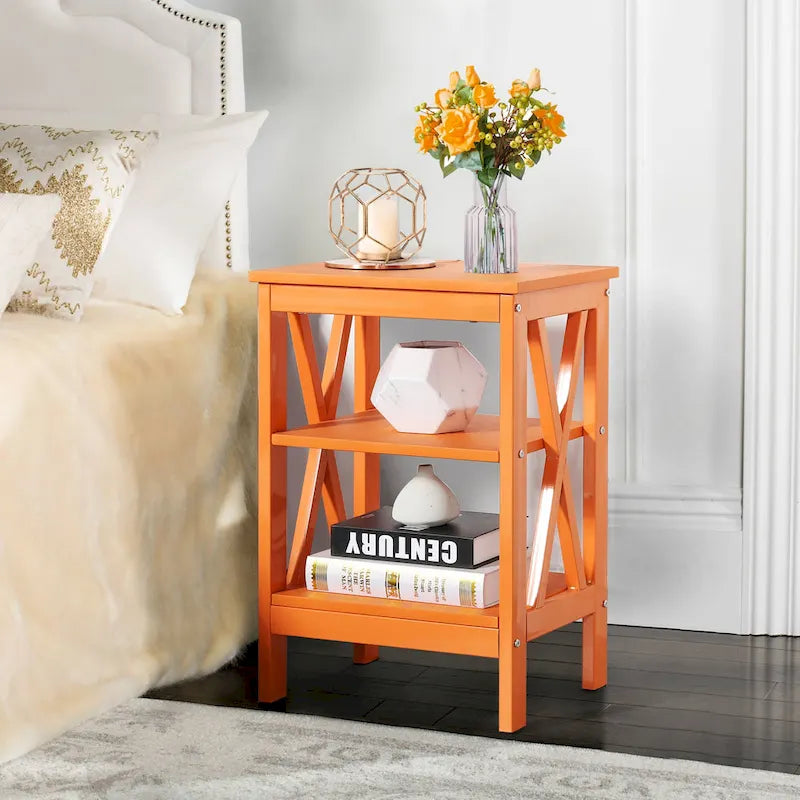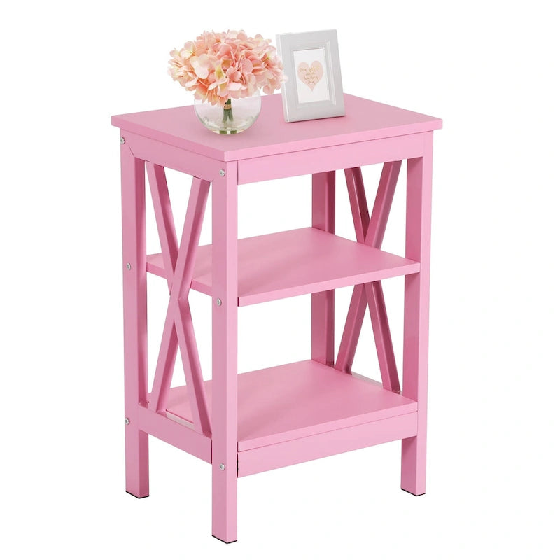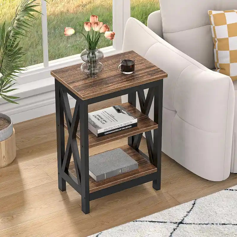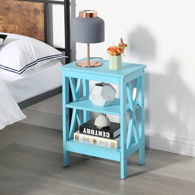 Tavolini moderni con ripiani portaoggetti a 3 livelli, set comodini a X (set da 2)