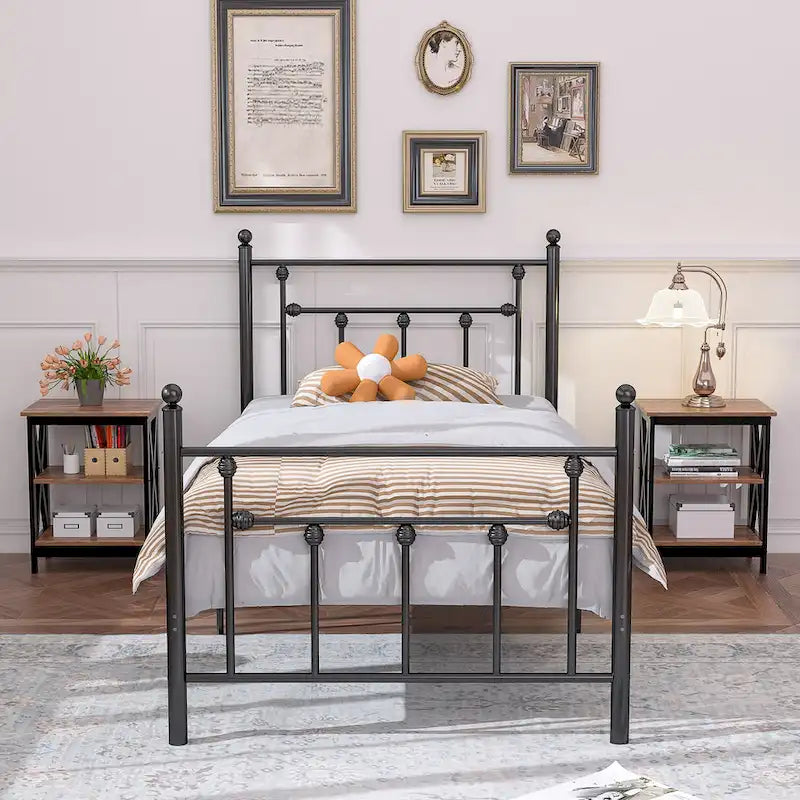 Questo set di due comodini è caratterizzato da una struttura in materiali misti e da ripiani multipli per un elegante look industriale moderno. Ogni pezzo ha una struttura in ferro con ripiani in legno ingegnerizzato per un sottile contrasto. I lati presentano una lavorazione traforata a X per fornire ulteriore supporto e aggiungere un tocco di stile rustico alla vostra camera da letto. In alto, potete posizionare una lampada da tavolo e una sveglia, mentre sui ripiani inferiori potete riporre libri e altri oggetti decorativi. Con una larghezza di 15,7 cm, questi comodini si adattano facilmente a entrambi i lati del letto senza occupare troppo spazio.