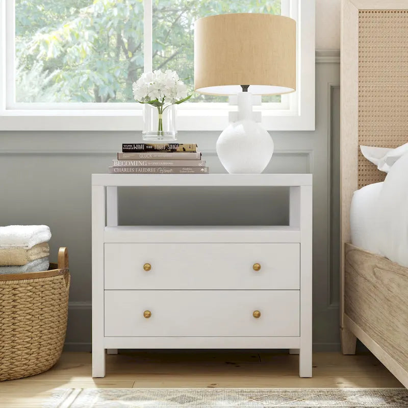 Con un design semplice e pulito e una raffinata lavorazione artigianale, la collezione Nora dona un tocco tradizionale al vostro spazio abitativo. Progettata con 2 cassetti inferiori e un ripiano superiore aperto, offre funzionalità studiate per un facile accesso e stoccaggio, mentre una splendida finitura anticata conferisce un sofisticato tocco rustico e naturale.
