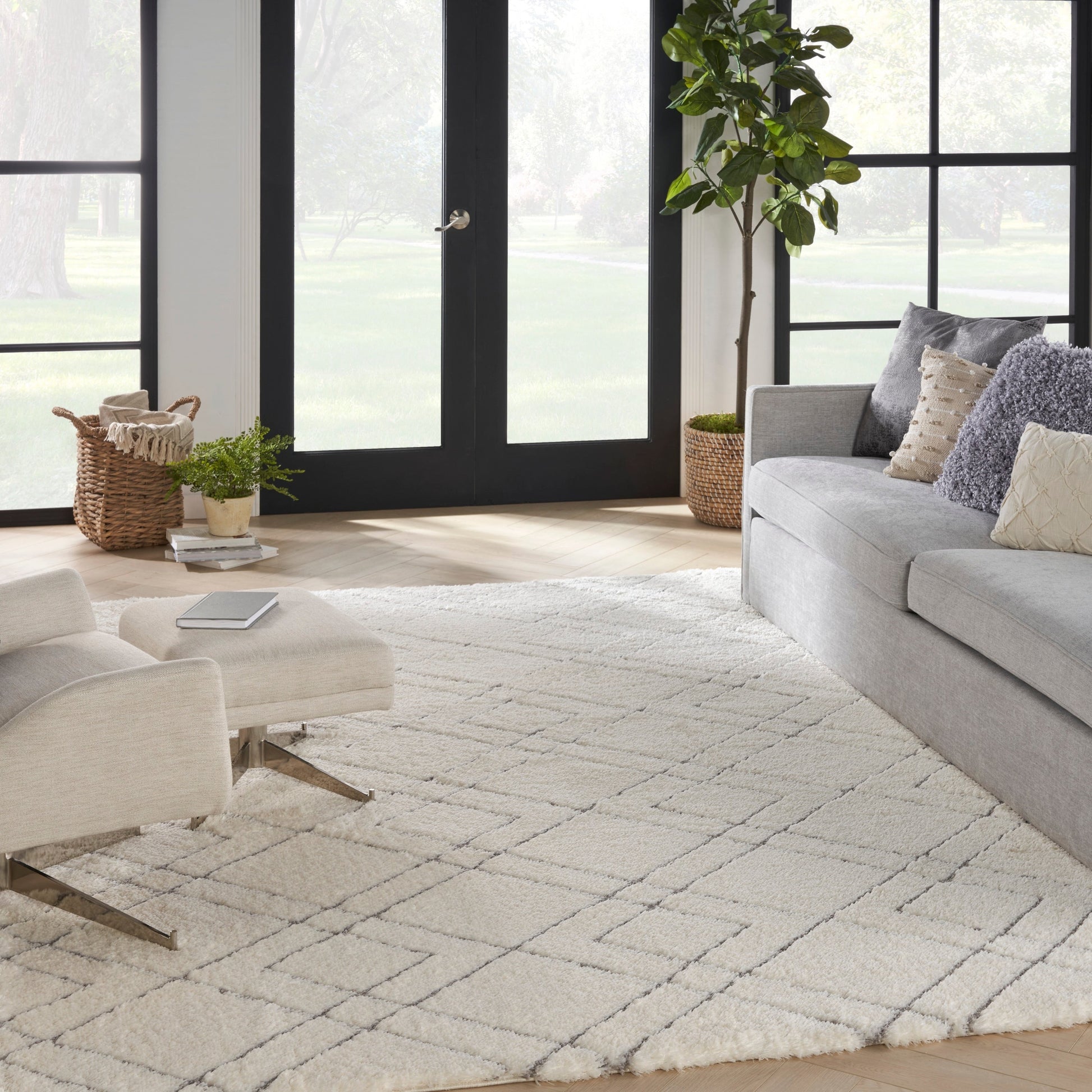 Con il suo motivo semplice di ispirazione scandinava e la base neutra color avorio, questo lussuoso tappeto Shag aggiunge un tocco di calore e comfort al tuo spazio. Realizzato in morbidissimo poliestere, vanta un pelo spesso 3,8 cm, in cui amerai affondare i piedi. Posiziona questo tappeto geometrico in soggiorno o in camera da letto per un tocco di stile accogliente e invitante.
