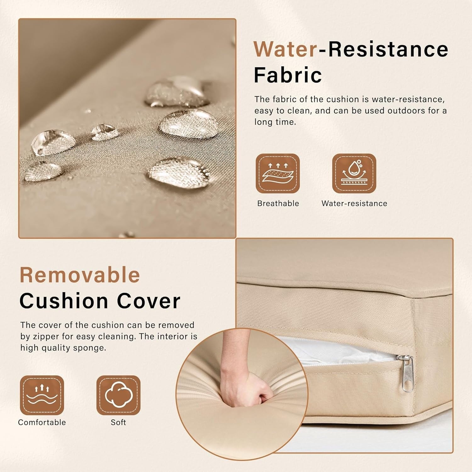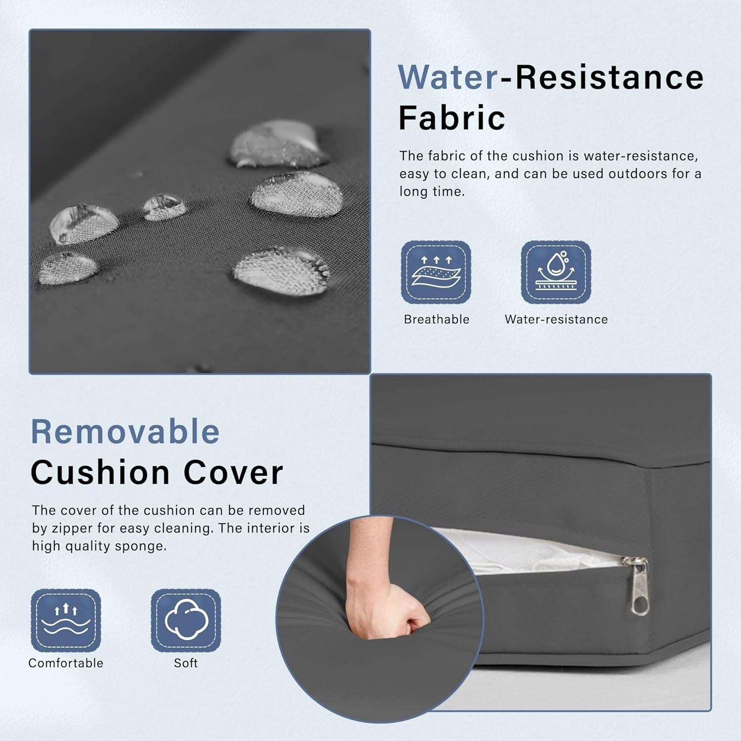 - Le fodere dei cuscini rimovibili in poliestere sono resistenti alle intemperie e dotate di imbottitura in spugna.