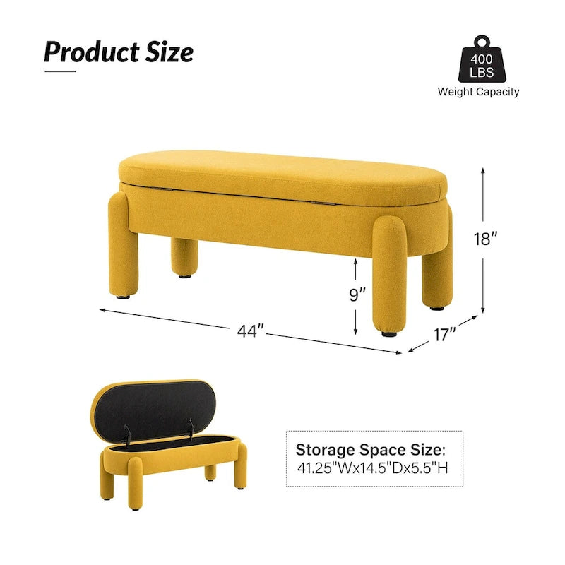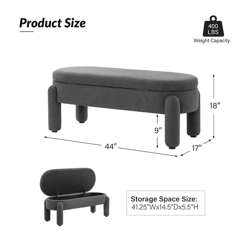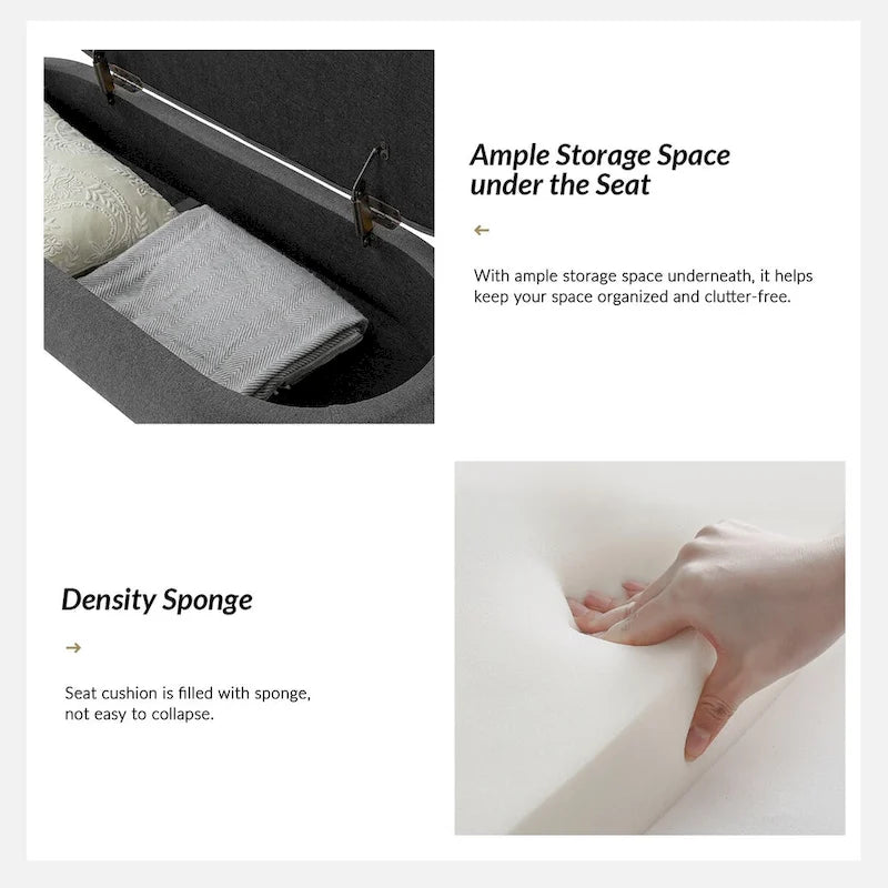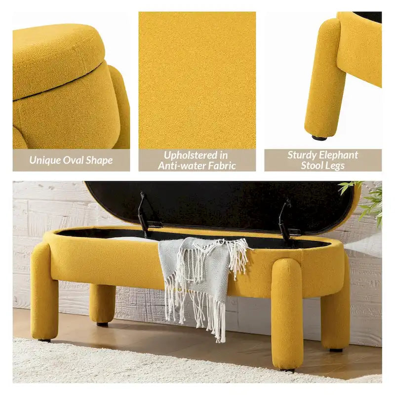 Questa panca contenitore combina perfettamente funzionalità e stile, offrendo una soluzione pratica per le esigenze di seduta e contenimento. Rivestita in tessuto impermeabile, garantisce durata e facilità di manutenzione, rendendola adatta a diversi ambienti, dal soggiorno all'ingresso. La panca presenta un'elegante forma ovale, che aggiunge un tocco di moderna raffinatezza a qualsiasi arredamento. Progettata pensando al comfort, offre una seduta morbida e invitante, perfetta per rilassarsi dopo una lunga giornata. Le esclusive gambe a forma di elefante offrono un supporto robusto, aggiungendo al contempo un elemento estroso e affascinante al design. Con un ampio spazio sottostante, aiuta a mantenere lo spazio organizzato e ordinato. Questa panca contenitore è un elemento versatile ed elegante che esalta l'estetica della tua stanza.