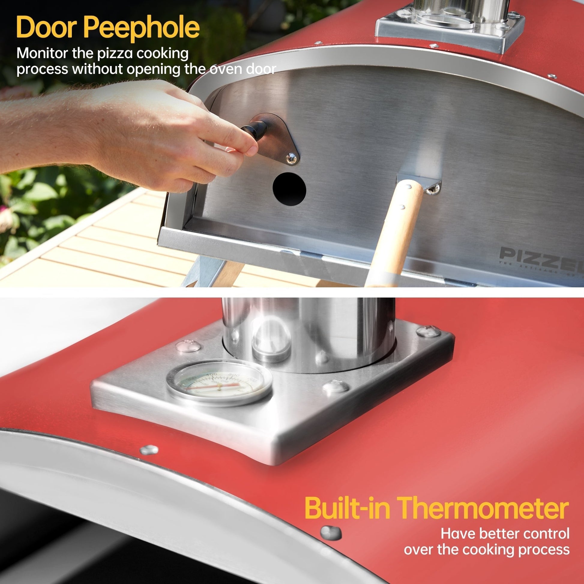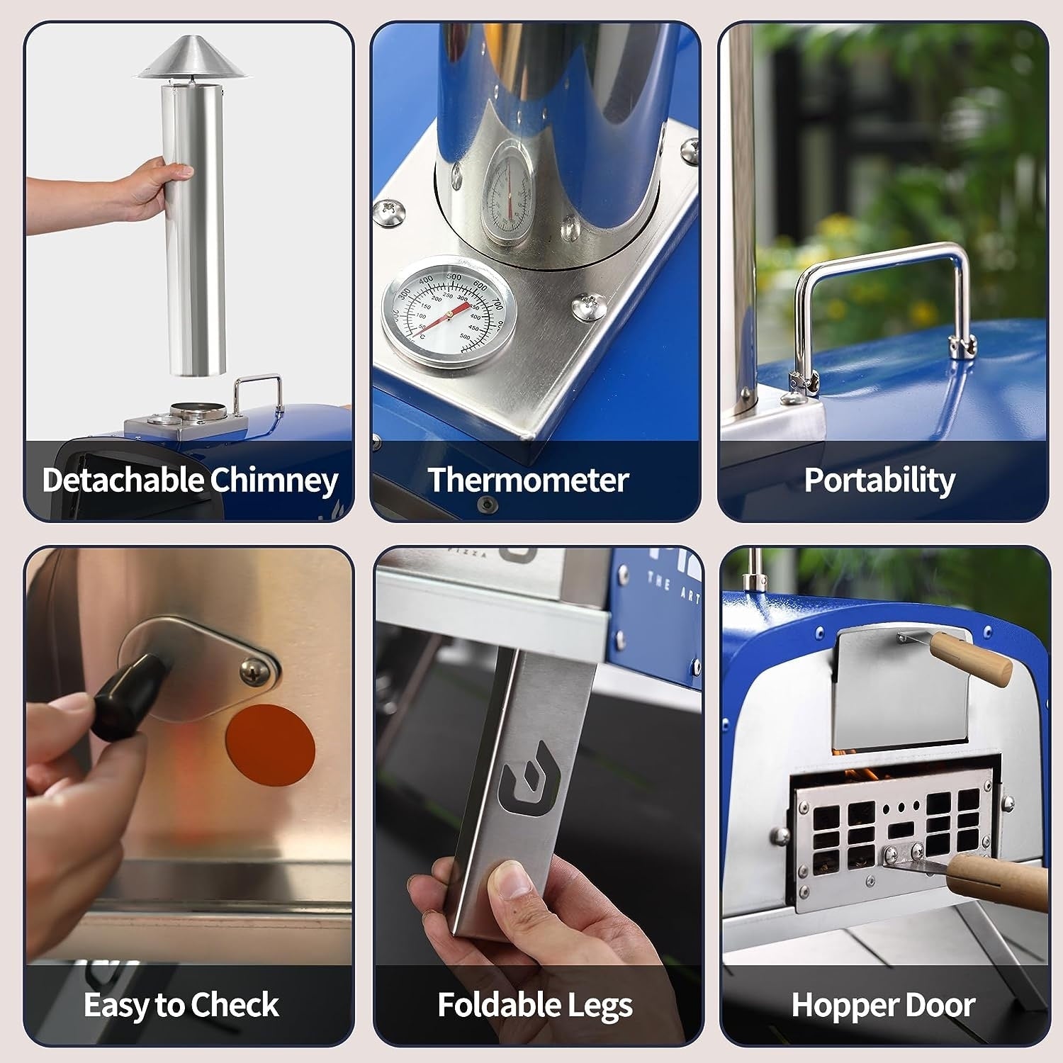 Il nostro forno per pizza a pellet da 16' è progettato per offrire versatilità e praticità eccezionali. Compatibile con pellet, il forno per pizza da esterno raggiunge rapidamente i 250 °C in soli 20-25 minuti, ideale per cuocere una pizza perfetta in 60 secondi. Il suo design portatile è dotato di maniglia e gambe pieghevoli per un facile trasporto, oltre a un termometro integrato per un controllo preciso della temperatura. Grazie alle doppie pareti e al rivestimento interno in acciaio inox, il forno per pizza portatile mantiene il calore e si pulisce senza sforzo. Oltre alle pizze, soddisfa diverse esigenze di cottura.