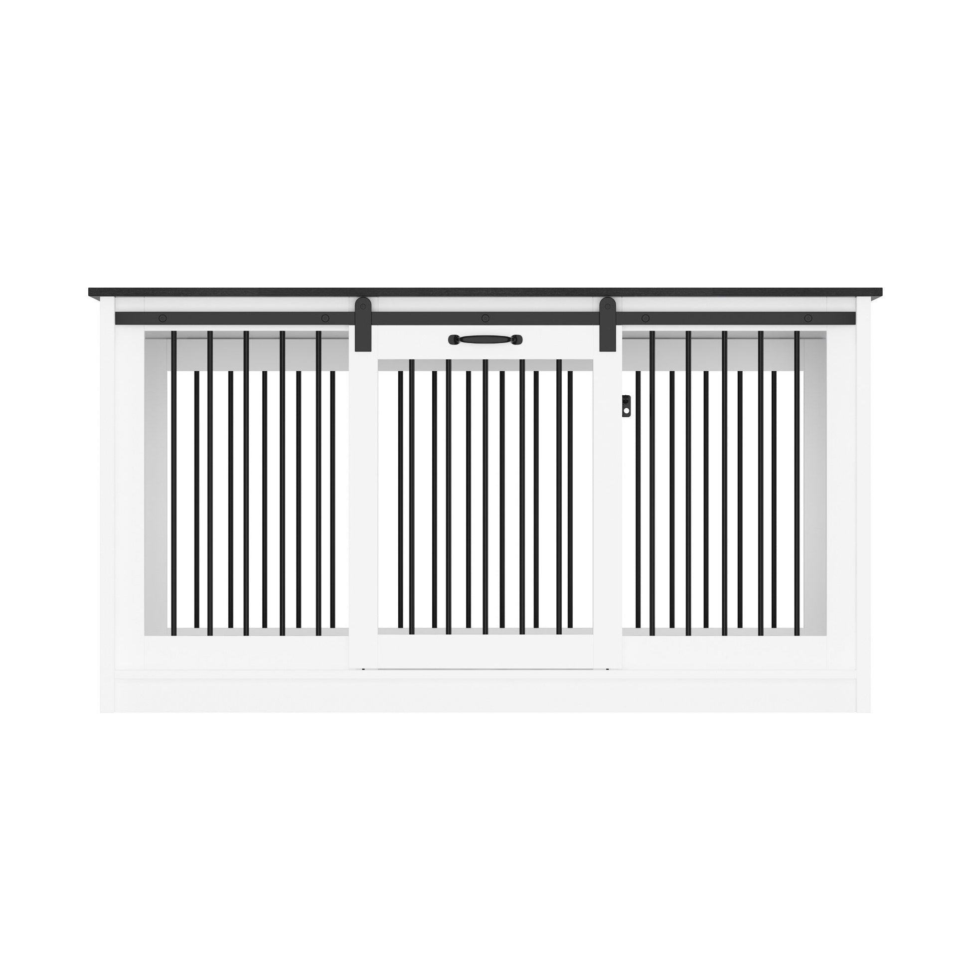 Sicurezza e stabilità garantite: dotata di solide sbarre in ferro, la gabbia consente ai vostri animali domestici di partecipare attivamente alla vita familiare, garantendo al contempo la loro sicurezza. Una porta con serratura in stile fienile aggiunge un ulteriore livello di sicurezza, impedendo scivolamenti o fughe.