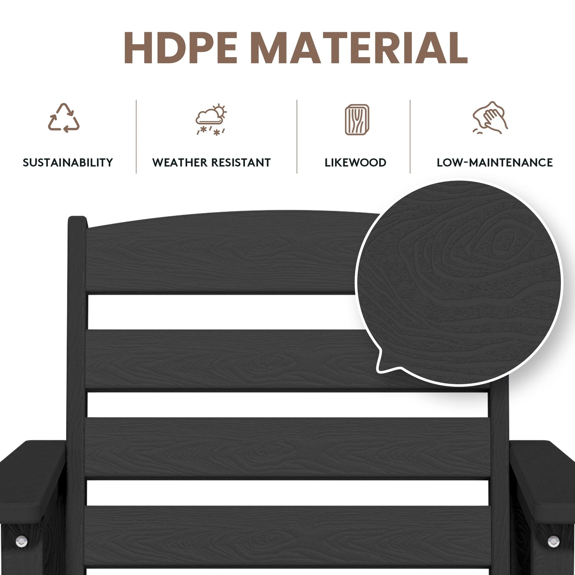 Set di 3 sedie Adirondack alte in plastica, set da conversazione per patio
