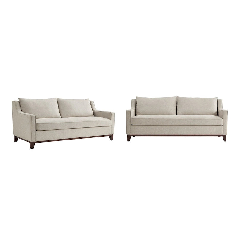 Completa il tuo salotto formale con questo divano in tessuto. Questo elegante divano presenta un look semplice ma sofisticato, con braccioli inclinati, rivestimento in tessuto intrecciato mélange e robusti piedini color caffè. Il rivestimento in tessuto non solo facilita l'abbinamento, ma aggiunge anche dettagli testurizzati e definizione al tuo spazio. I cuscini di seduta e schienale sono semi-morbidi e imbottiti in piuma d'oca per offrire comfort e supporto. La robusta struttura in legno massello di caucciù garantisce che questo divano ti offra sempre un angolo caldo e accogliente in cui rannicchiarti per gli anni a venire.