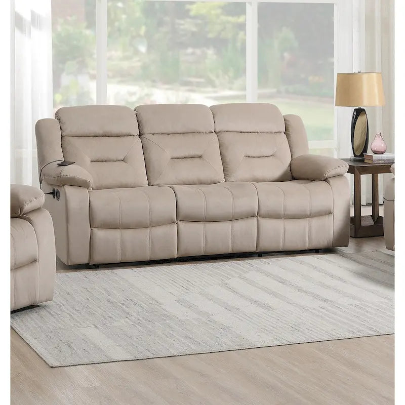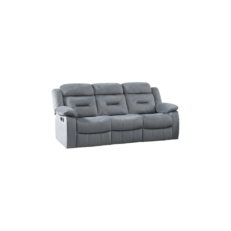 Progettato per ospitare tre persone, questo divano è l'epitome del comfort, con braccioli che aggiungono un ulteriore livello di intimità alla tua esperienza di relax. Il cuscino dello schienale non è solo morbido, ma vanta anche un poggiatesta progettato con trapuntatura orizzontale, assicurando che tutto il tuo corpo goda del lussuoso comfort che questa poltrona reclinabile ha da offrire. La maniglia di reclinazione, comodamente posizionata lateralmente, consente una reclinazione fluida e facile. Basta una semplice tirata e sei pronto per raggiungere la tua posizione di relax preferita. Ricarica il telefono senza dover lasciare la comodità della tua seduta, grazie alle comode porte USB proprio accanto alla maniglia di reclinazione. Il materiale utilizzato non è altro che velluto pregiato, che aggiunge un tocco di eleganza al tuo spazio.