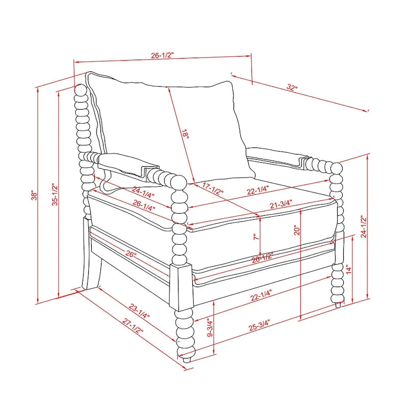 - Cuscino posteriore: 18 pollici di altezza x 21,75 pollici di larghezza