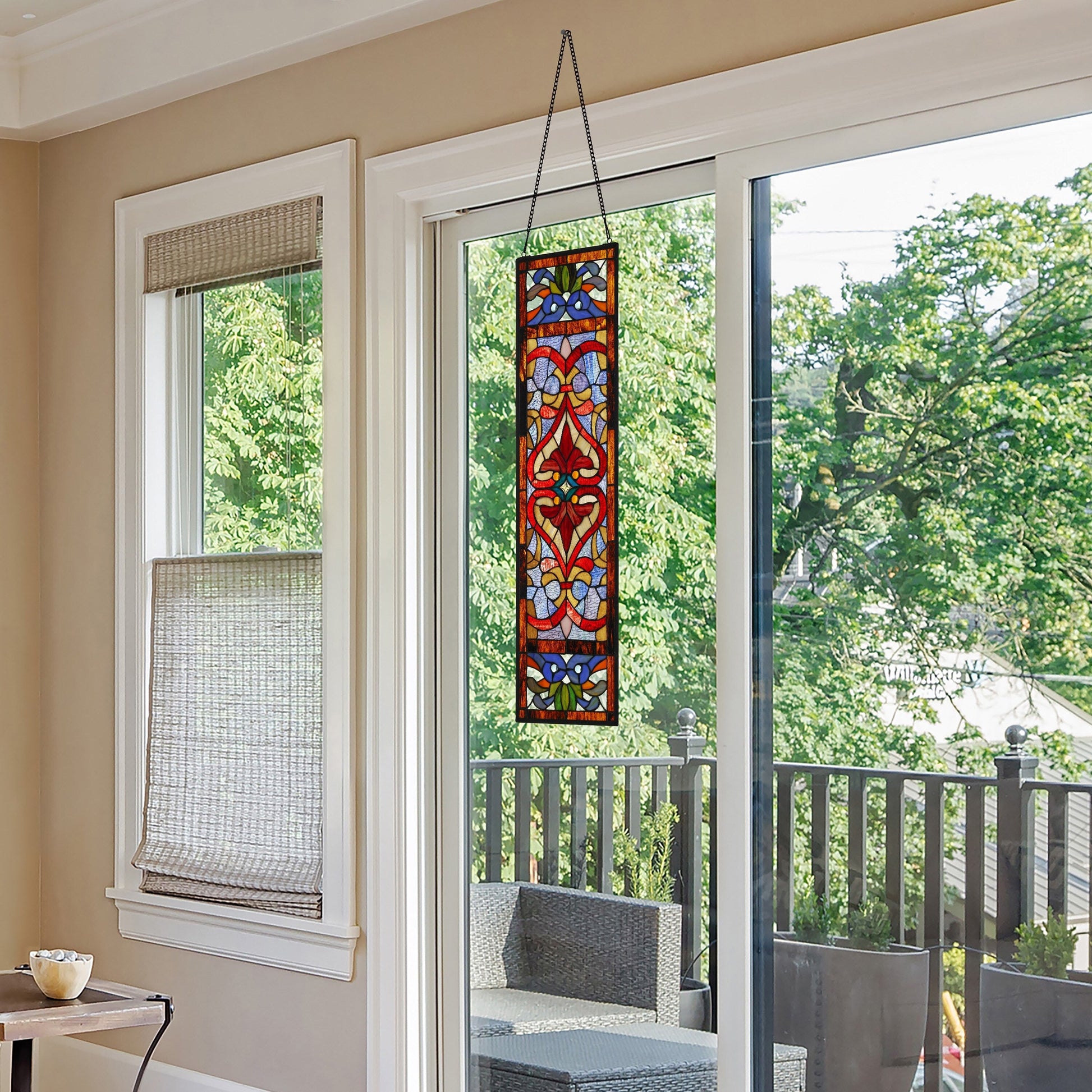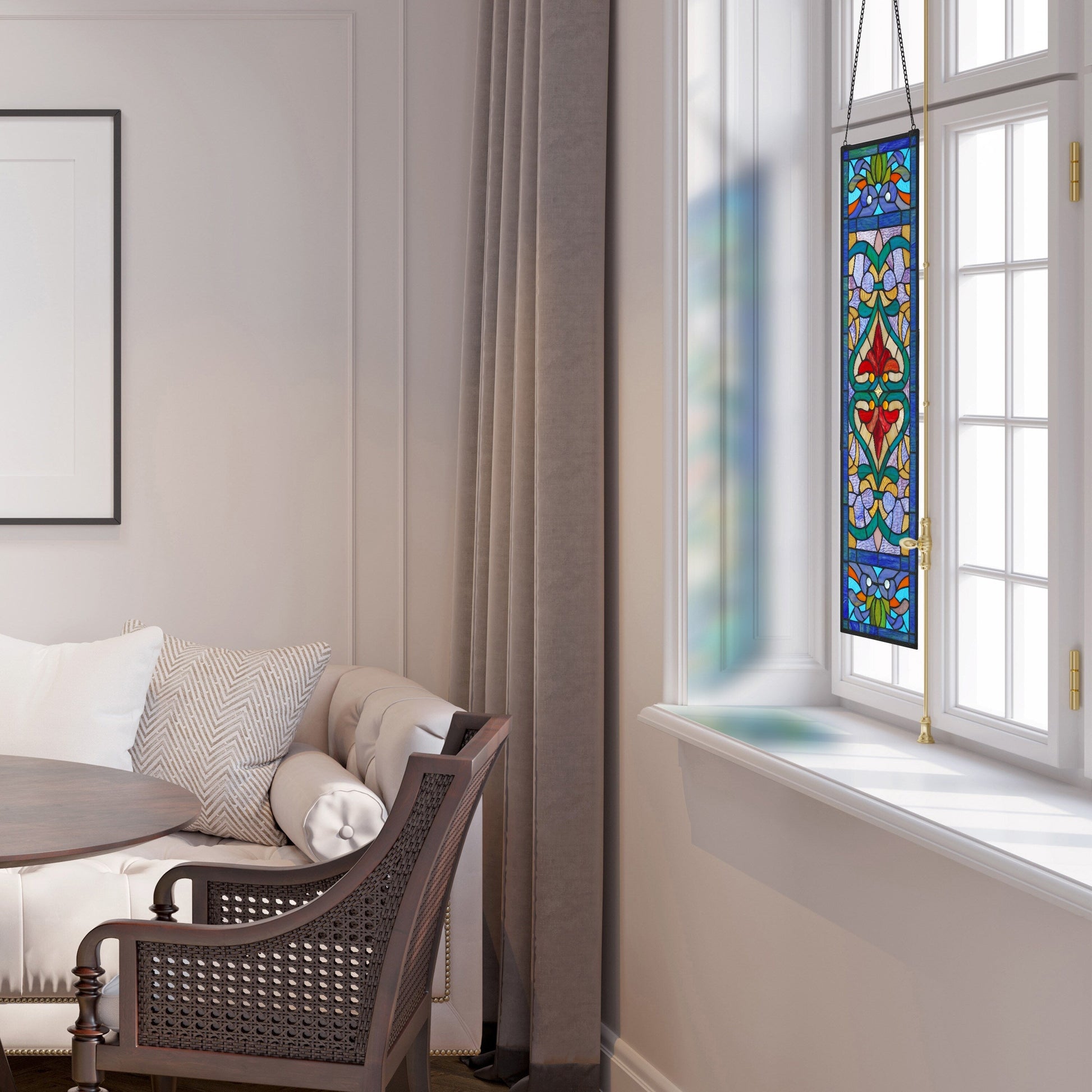 Aggiungi privacy e bellezza alla tua casa con questo pannello in vetro colorato in stile vittoriano di River of Goods. Lo squisito motivo Fleur De Lis è realizzato a mano con brillanti colori blu, verde acqua e rosso che catturano i raggi del sole e riflettono la luce in ogni stanza. Questo pannello è dotato di una catenella decorativa per una facile installazione e può essere esposto come acchiappasole, come decorazione da parete o accanto alla porta d'ingresso. Delizia i tuoi cari con questo splendido pannello in vetro che aggiunge calore e allegria a qualsiasi spazio abitativo.