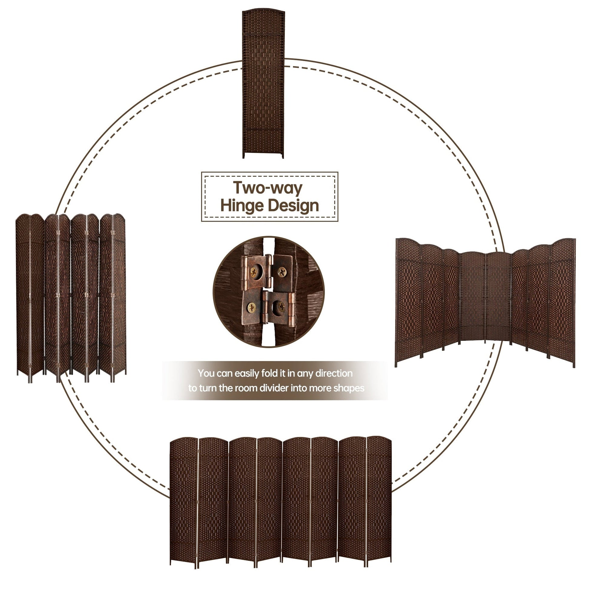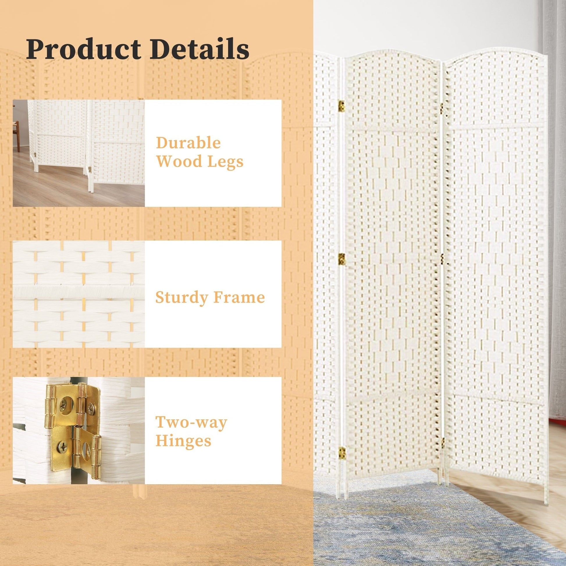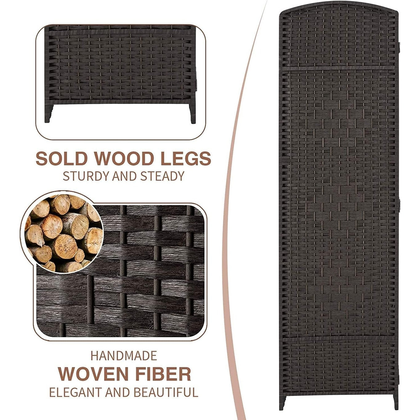 Divisorio per ambienti, divisorio pieghevole in fibra intrecciata, alto 6 piedi, indipendente