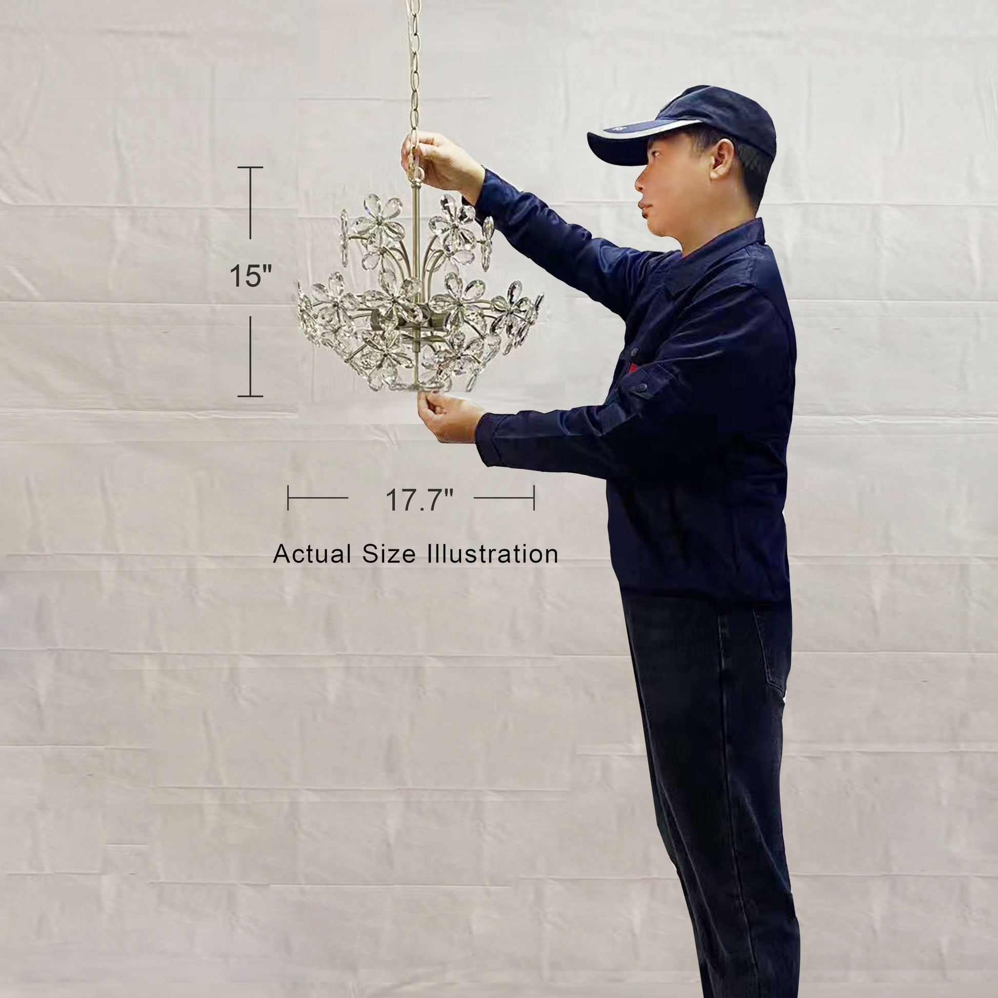 Lampadario in cristallo a 6 luci Rosa color argento spazzolato e champagne