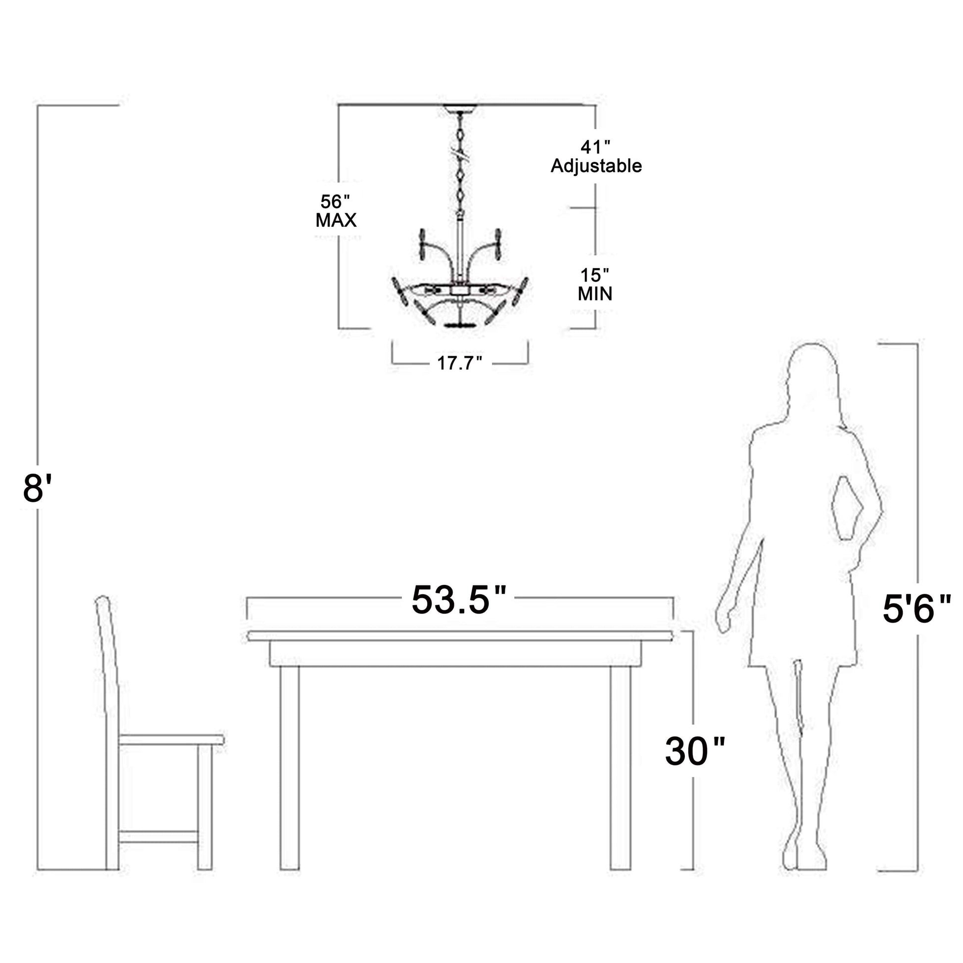 - Altezza massima di sospensione (dal soffitto alla base dell'apparecchio di illuminazione): 56 pollici, che può essere accorciata.