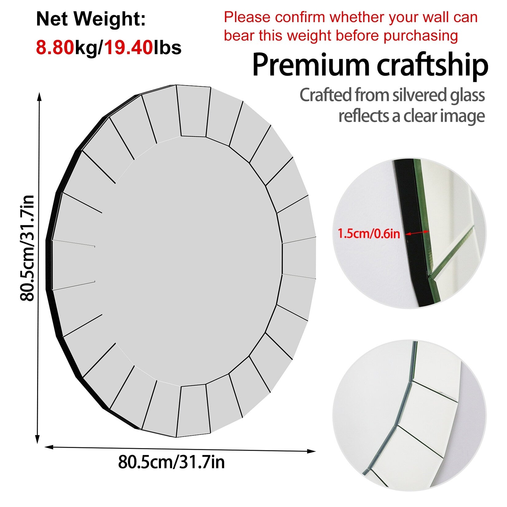 Aggiungi un tocco di stile alla tua casa o al tuo ufficio con questo specchio rotondo contemporaneo. Puoi decorare qualsiasi parete importante con questo abbagliante specchio contemporaneo e catturare l'attenzione. Specchio rotondo moderno trasparente con effetto sunburst. Questo specchio decorativo illuminerà senza dubbio qualsiasi spazio abitativo ed è perfetto se cerchi un look fresco e moderno. Uno specchio è inserito all'interno della cornice, ideale per l'uso quotidiano.