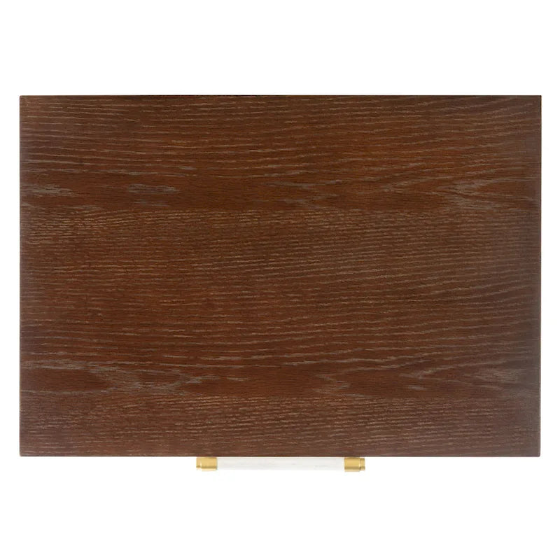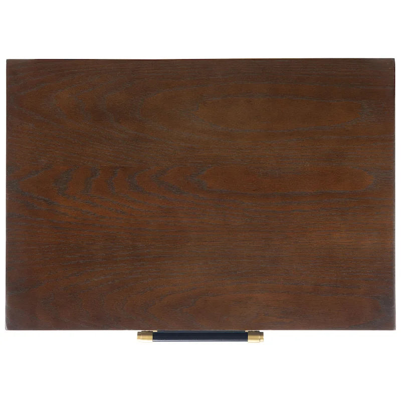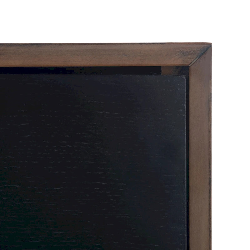 Uno studio di design approfondito, questo comodino a due cassetti è un vero e proprio colpo d'occhio. La struttura con finitura in ottone crea un contrasto sorprendente con i suoi eleganti cassetti neri, conferendo a Justice un inconfondibile tocco da sartoria. Gambe e maniglie con puntali in ottone completano il look.