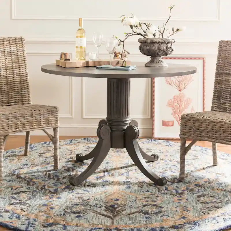Crea ricordi indimenticabili con amici e familiari attorno a questo splendido tavolo da pranzo a ribalta. Il design tradizionale di questo pezzo presenta una base a piedistallo classica e splendidi dettagli intagliati a volute, esaltati da una finitura pregiata, che lo rendono un'aggiunta senza tempo a qualsiasi sala da pranzo.
